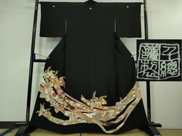 | 【正絹・五つ紋・比翼仕立て】 状態は特に目立ったシミ汚れなどもなく大変良い状態です。 昭和33年(1958年)の皇太子明仁親王成婚に際し、 皇太子妃美智子の調度品をはじめ、各宮家の調度品を受注した 創業460年を迎えた「千總」の逸品です。 大変上質な極上の逸品になります。 お安く出品致しますので、是非この機会にいかがでしょうか?