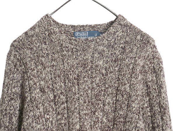 | 商品名 | 00s ポロ ラルフローレン コットン ニット セーター レディース M オールド 長袖ニット ヘビーウェイト リブ編み クルーネック 杢 ブラウン |