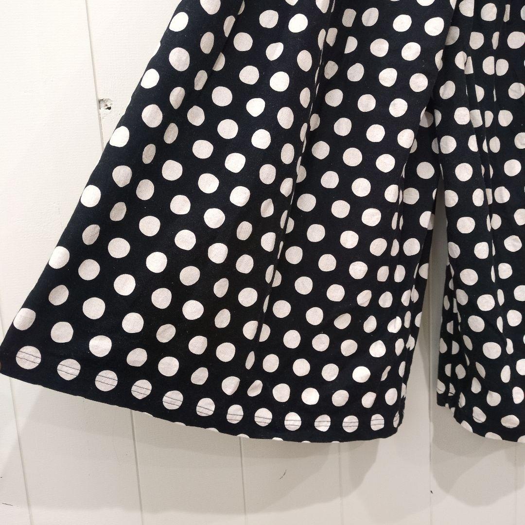 【品名】リネン混 ボックスタック ワイドパンツ 水玉