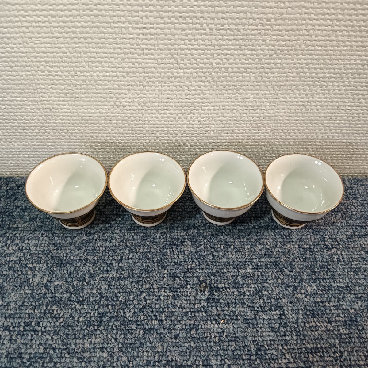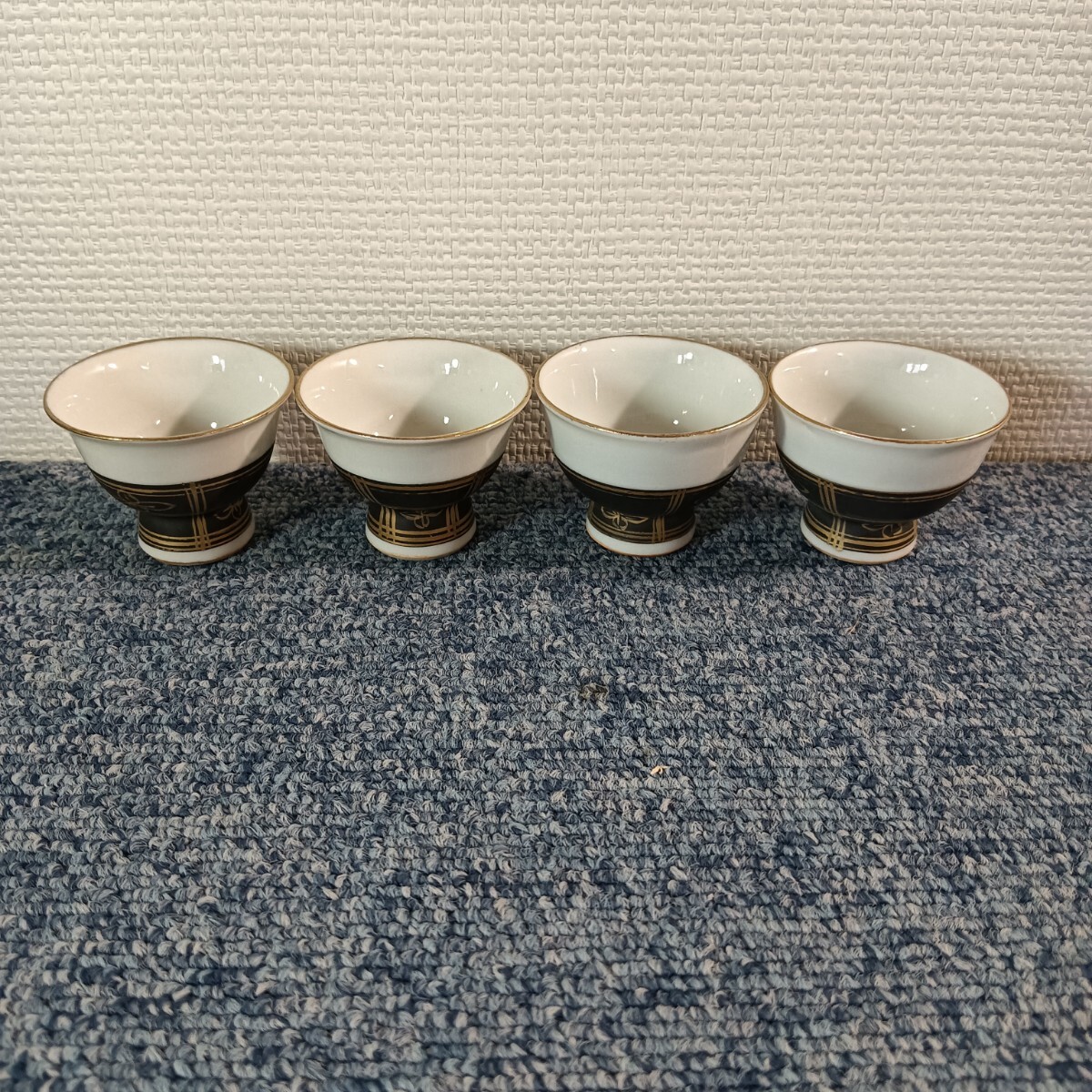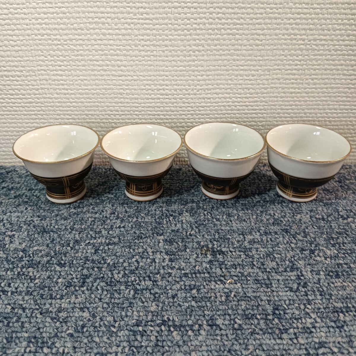 白黒装飾 お猪口 4個セット 九谷春峰 未使用