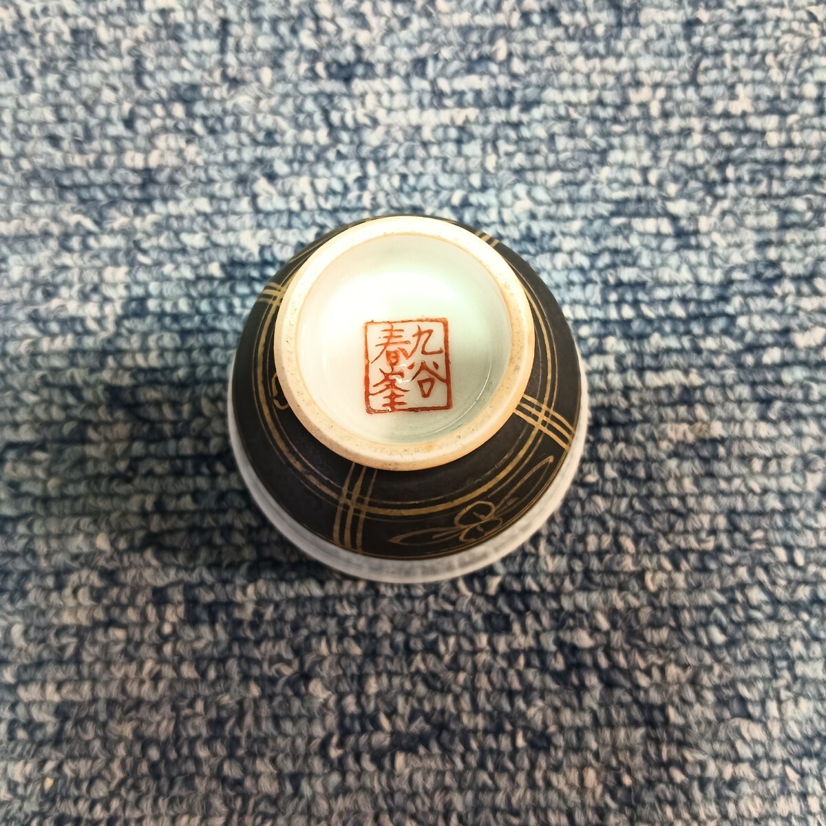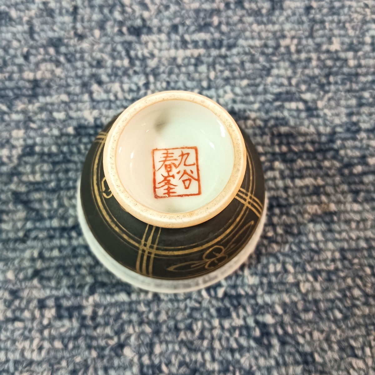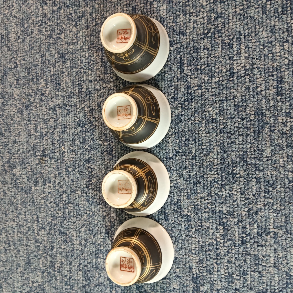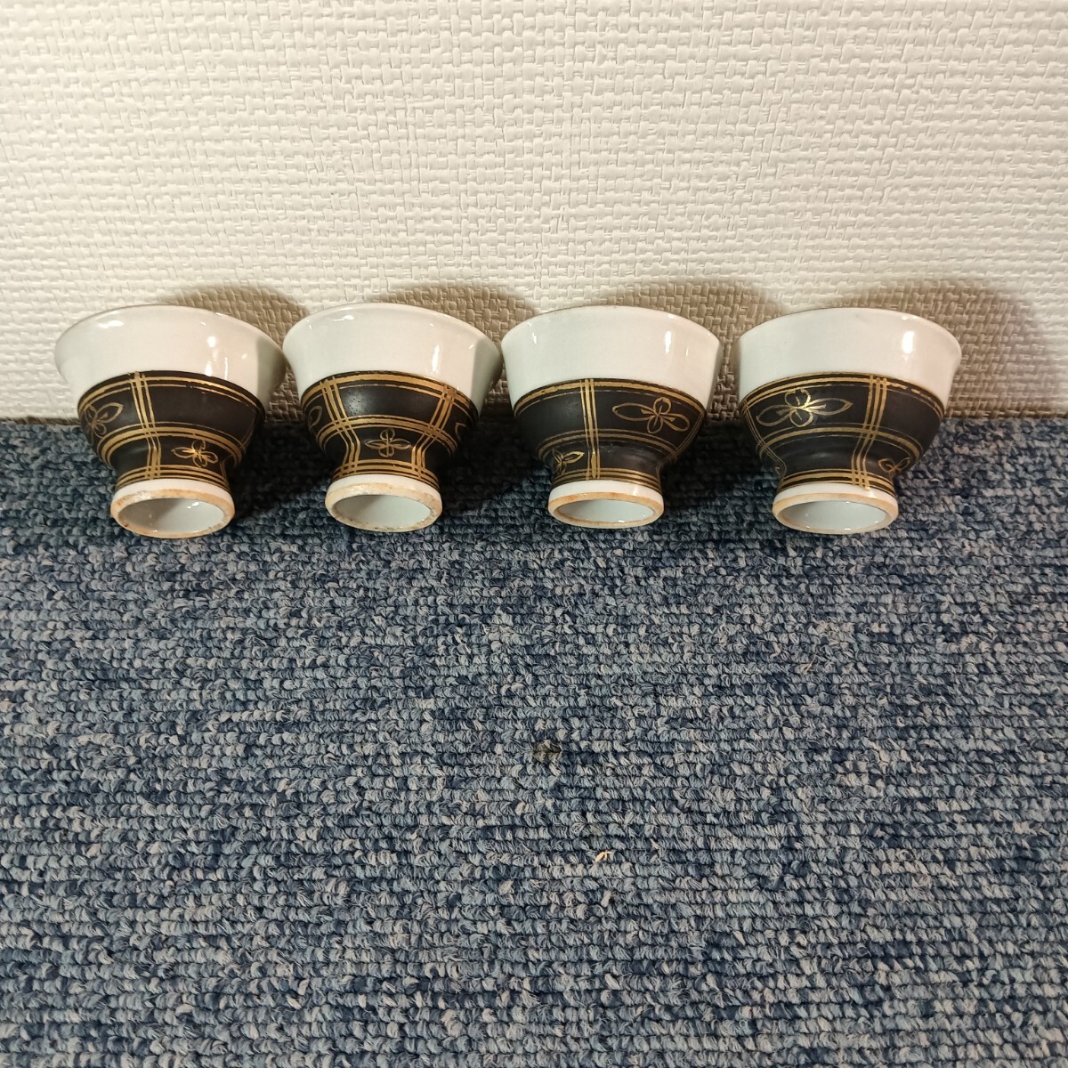 白黒装飾 お猪口 4個セット 九谷春峰 未使用