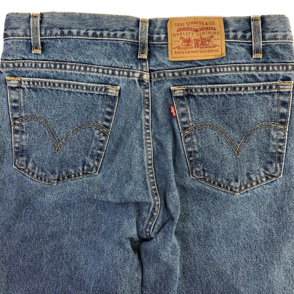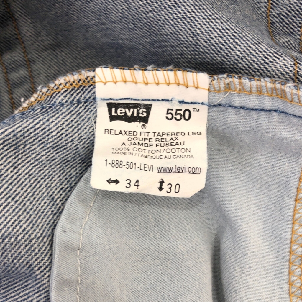 | 【商品管理番号】 V5864 【ブランド】 Levi's/リーバイス 【サイズ】 W34 L30 【実寸サイズ】 ウエスト:約86cm 股上:約31cm 股下:約76cm わたり幅:約34cm 裾幅:約20cm 【主な素材】 表地 : コットン 【色】 ブルー 【仕様】 生産国 : カナダ製 90年代 550 【状態】 汚れ:もも、ひざ キズ:裾 | |||