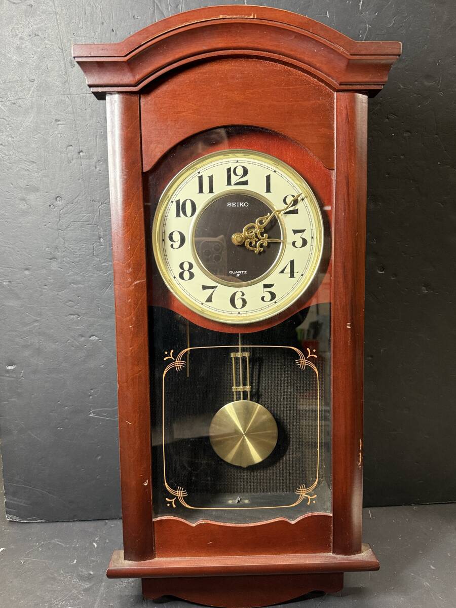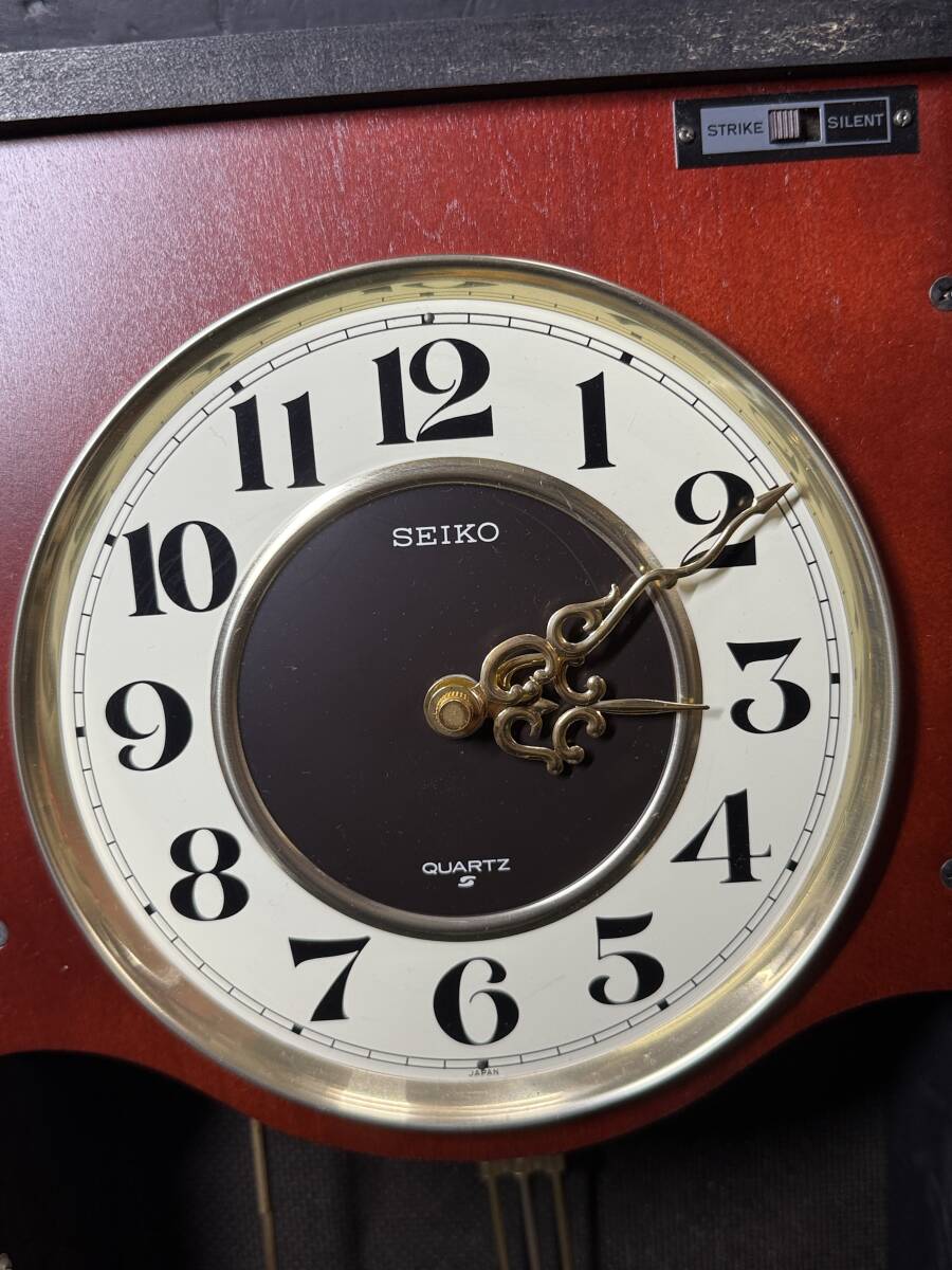 セイコー振り子時計の出品です。 現状品です。 状態など写真にてご確認ください。 |