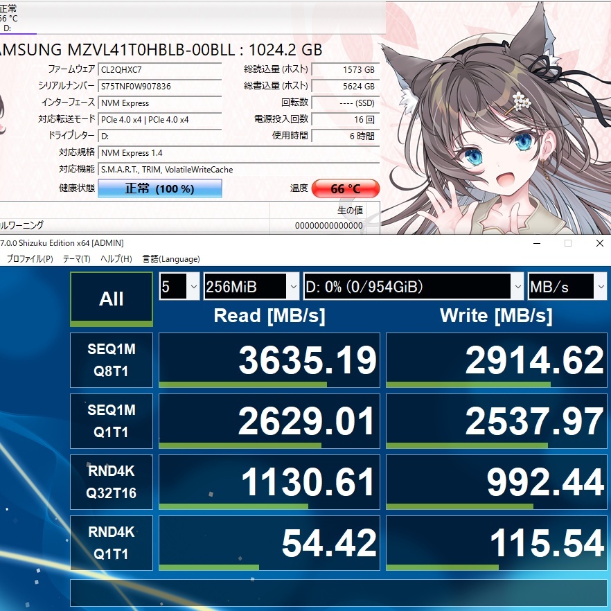 【中古】SAMSUNG PM9B1 1TB MZVL41T0HBLB-00BLL [M.2 2280 NVMe PCIe4.0x4 TLC 健康状態:100%]