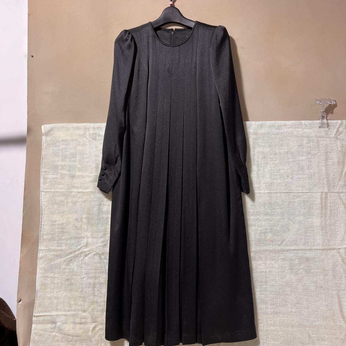 商品名:C3149 ワンピース 黒 長袖ワンピース ブラック フォーマルワンピース セミフォーマル やや光沢 縮緬風 シボあり ユーズド