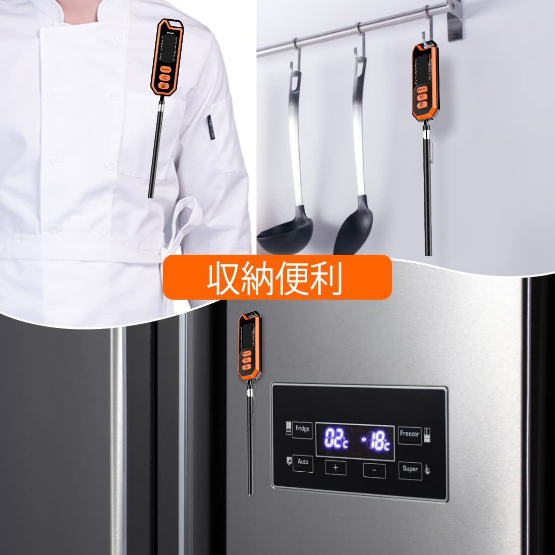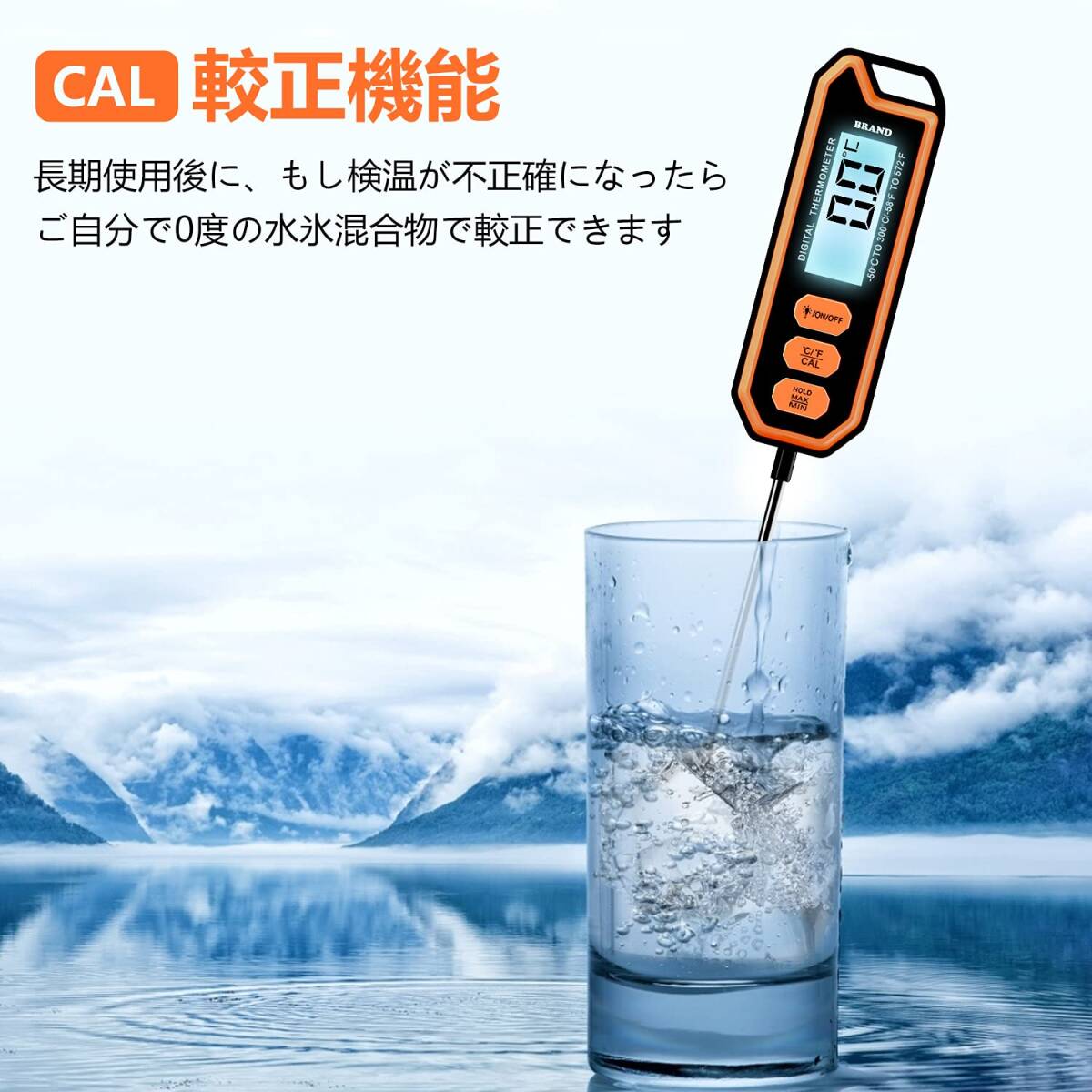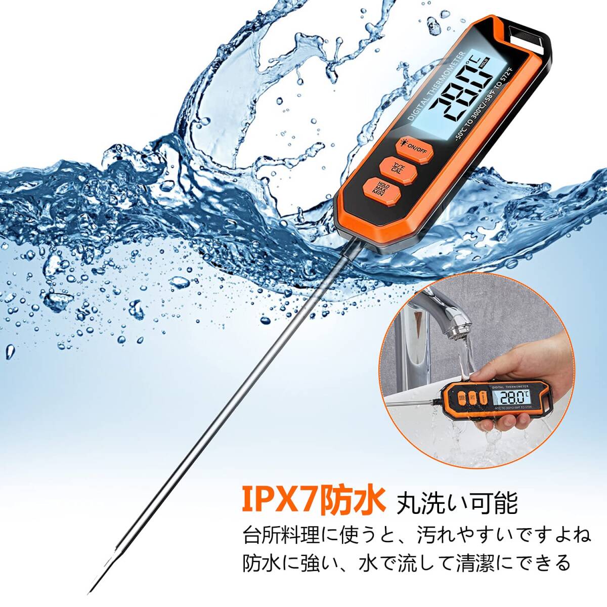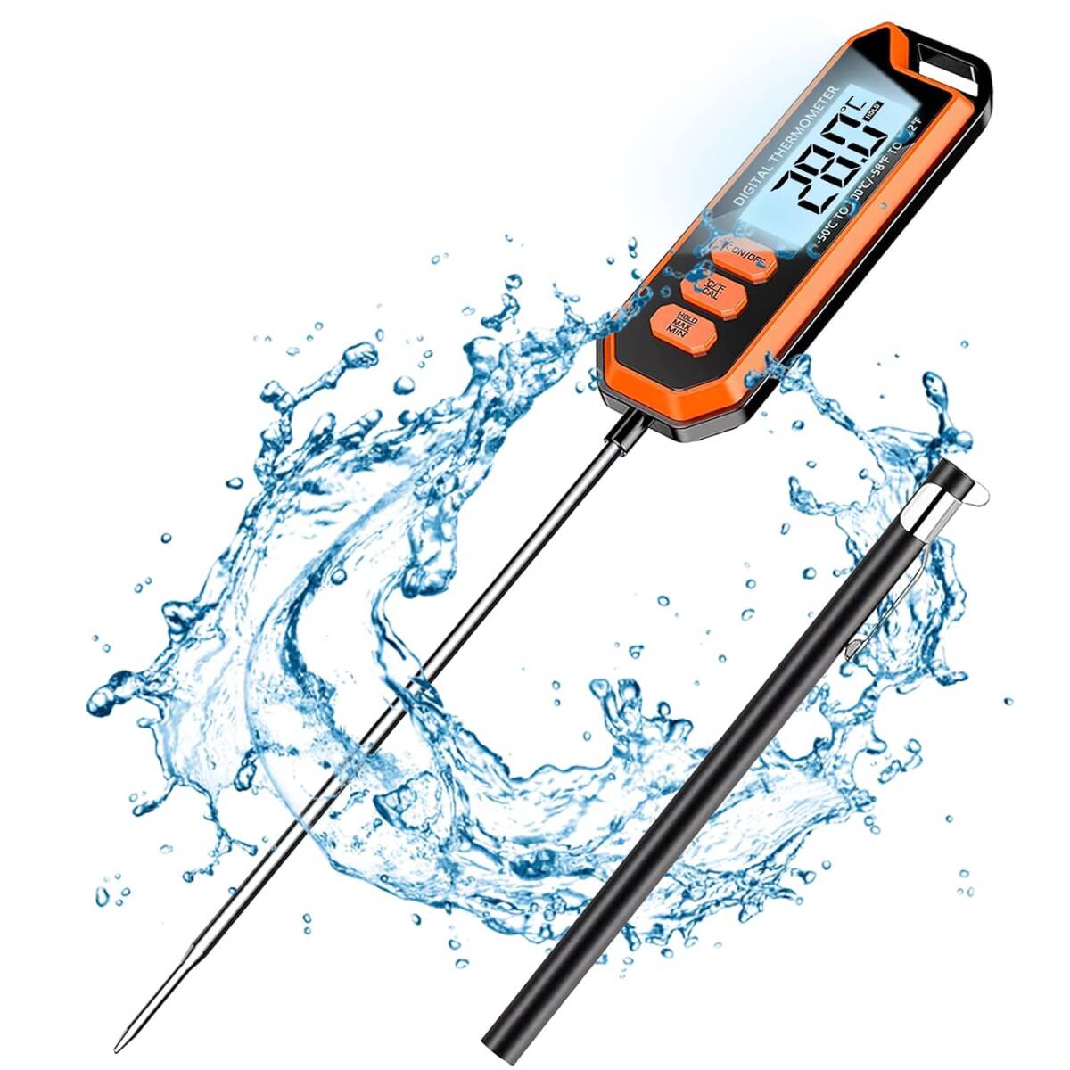 耐久性抜群 防水速読温度計、超長いプローブ、丸洗い可能、2 - 4秒速読、高精度