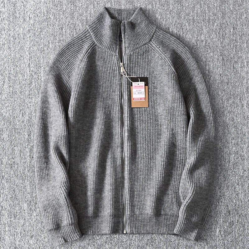 高級 国内未販売 新品 ウール混 ジップアップカーディガン メンズ 暖かい リブニット 厚手 秋冬 ジップアップ 伸縮性 カジュアル 柔らかい セーター ニット ジャケット アウター