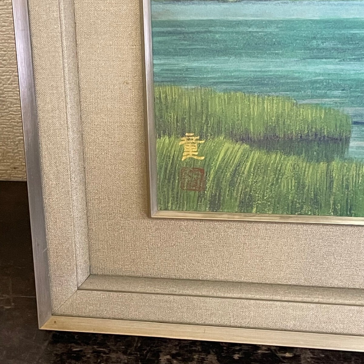 真作!水戸童『尾瀬沼』 直筆サイン入り 6号 日本画 額装 縦約49cm×横約57.5cm