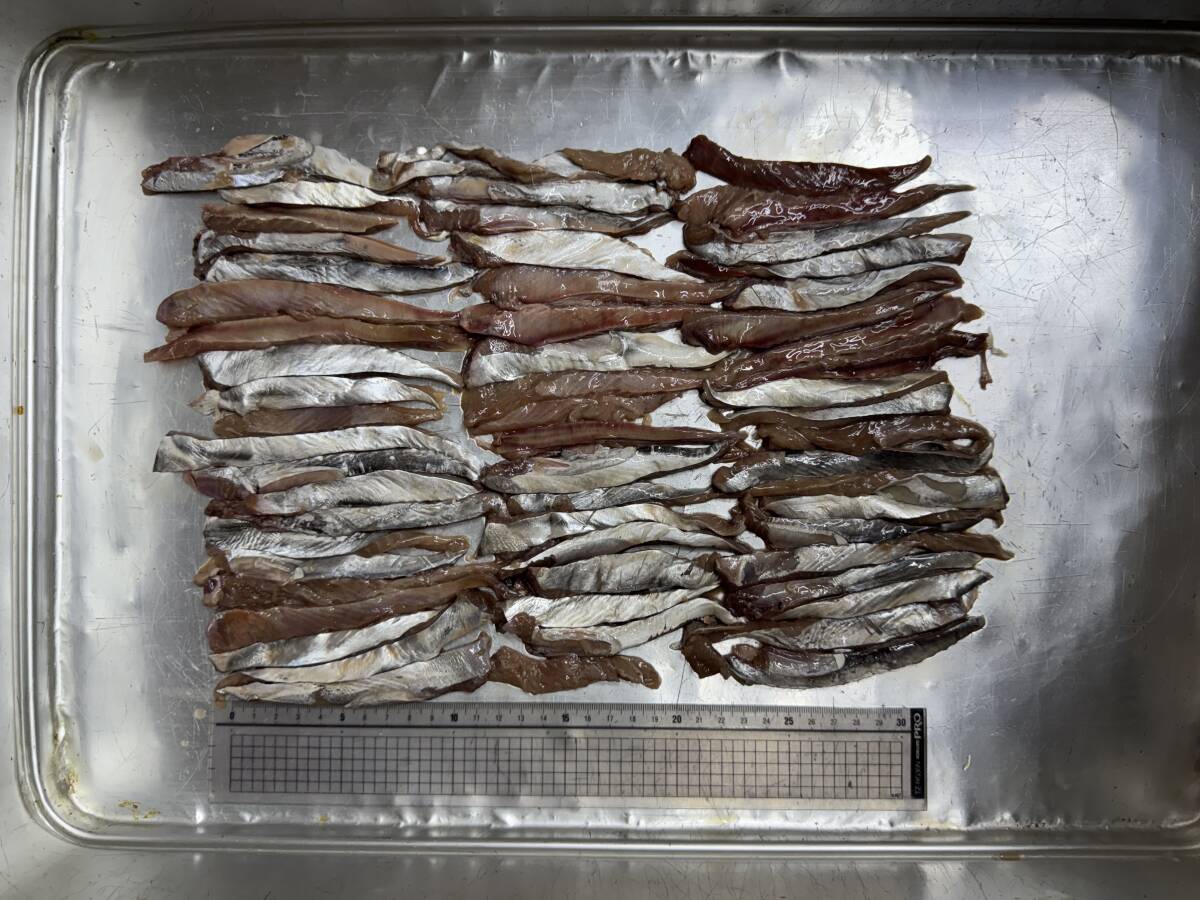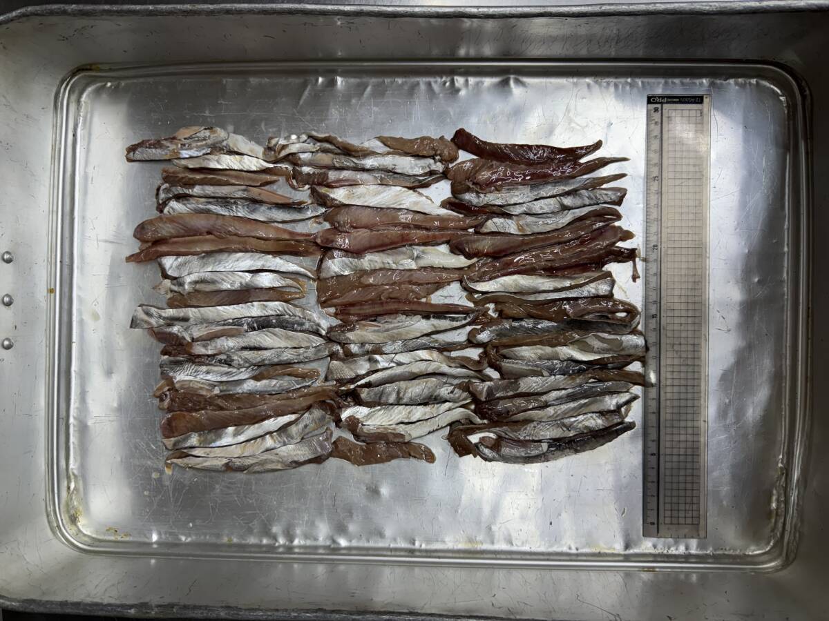 本カツオハラモ500グラム×10袋=5キロ 冷凍 ハラジ ハラス 腹身 腹皮 かつお 鰹 深海釣り 金目釣り ライト深海 大物 クエ ハタ 底物