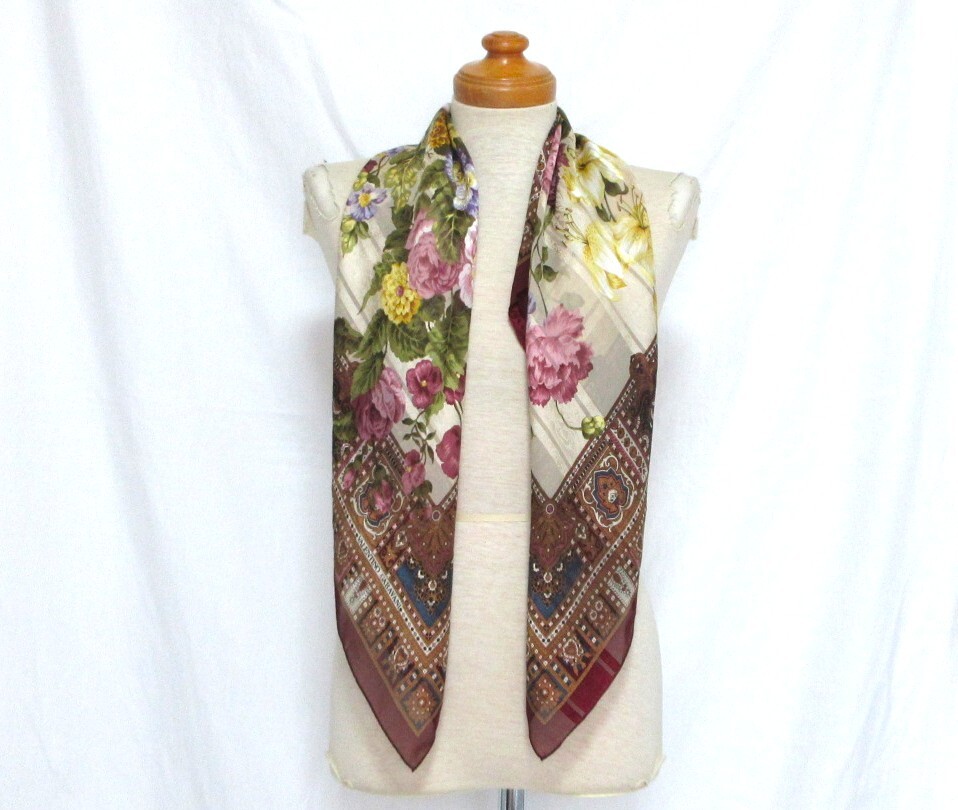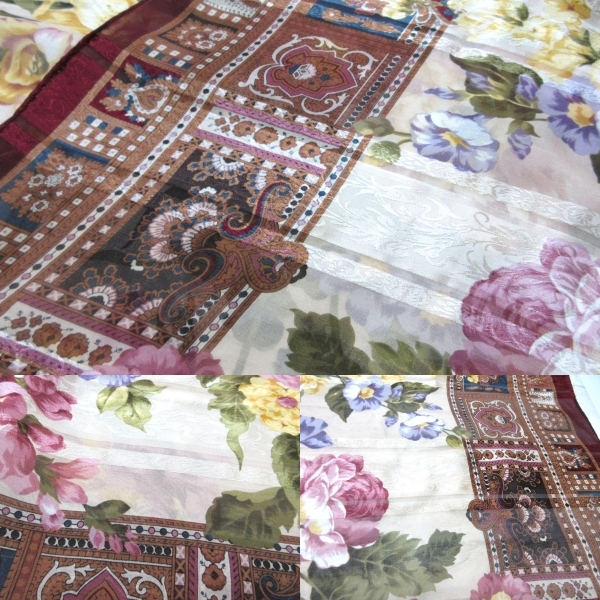 | フラワープリントシルクシフォン大判スカーフです。 | ||
