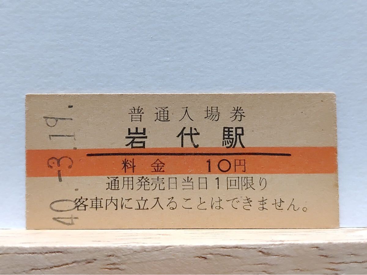 【切符/硬券】普通入場券 紀勢本線 岩代駅 赤線 10円 S40 @h