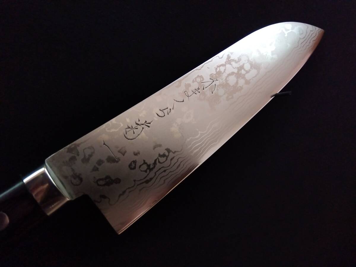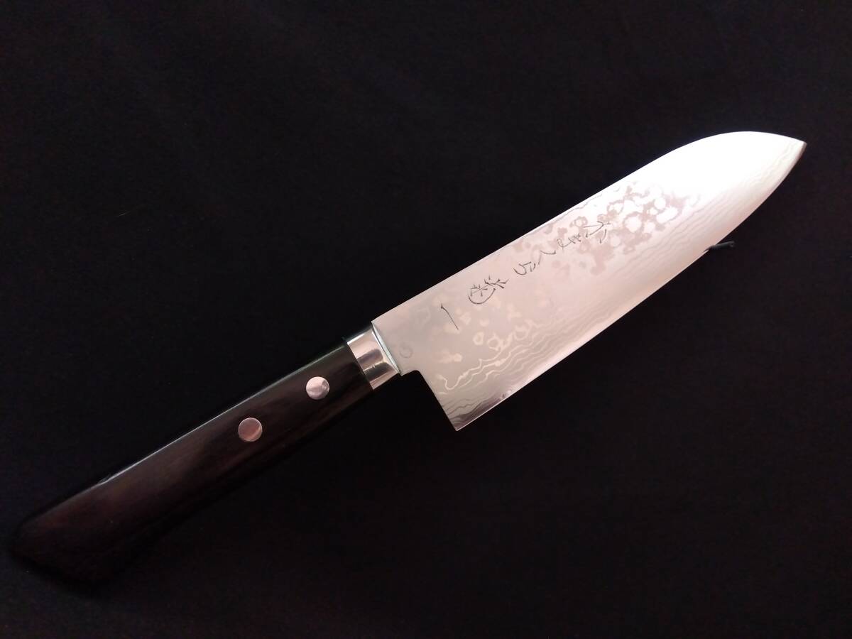 【超再生包丁】美品 かまくら菊一 磨きダマスカス 三徳包丁 165mm 鍔付き柄 切れ味新品以上 洋包丁 Japanese Chef Knife