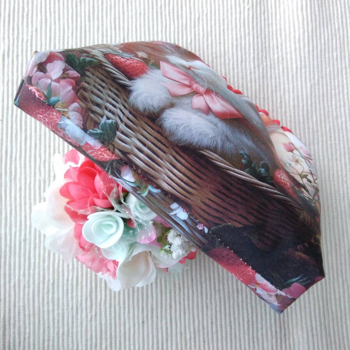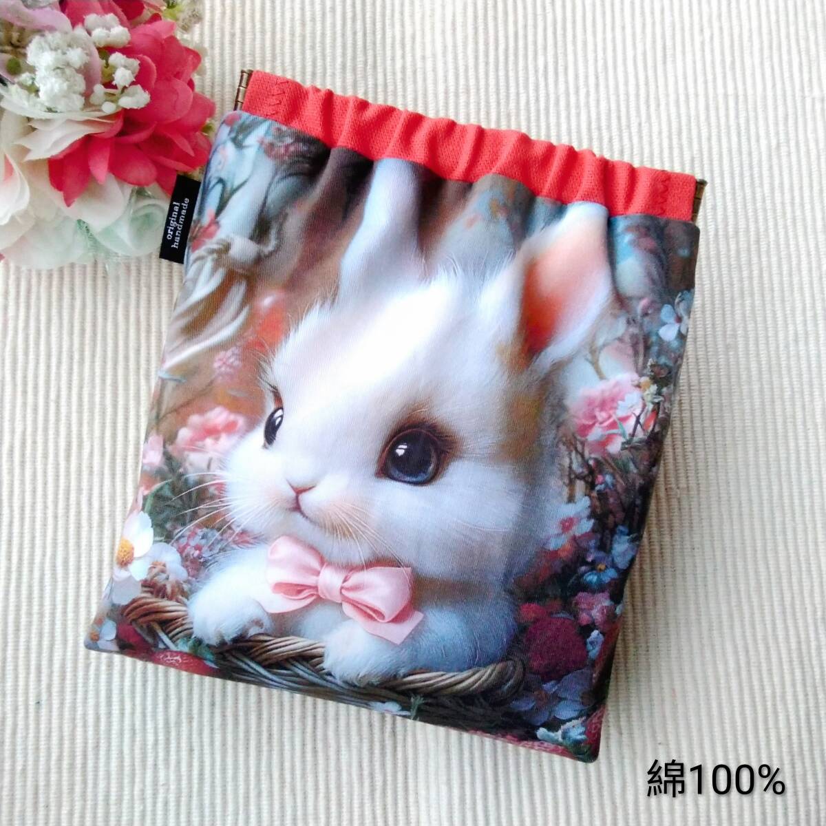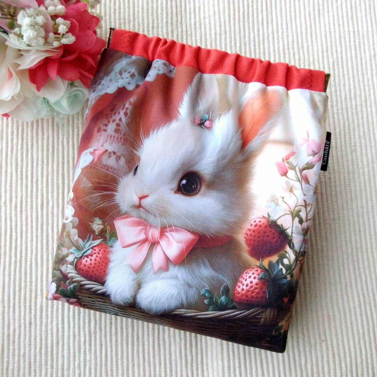 ハンドメイド バネポーチ 苺とうさぎ レッド パネル生地