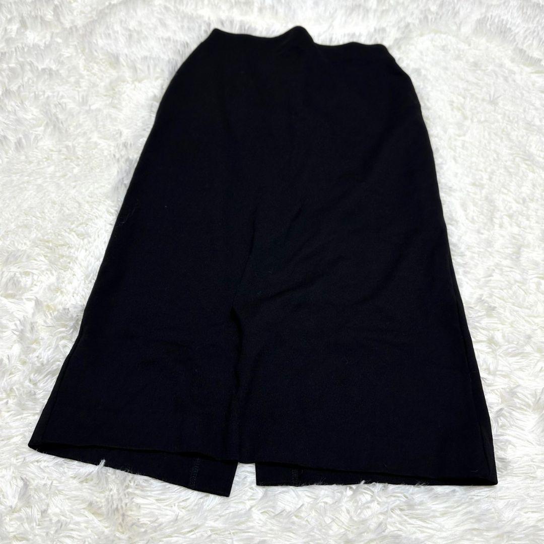 柔らかい生地のシンプルな黒のスリットスカート。