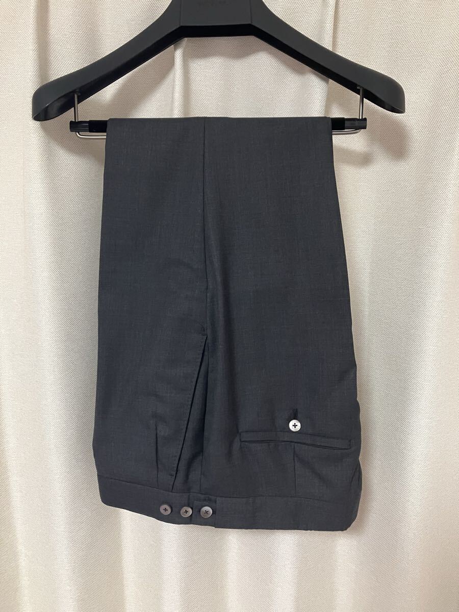 ジャケット:表地 ウール100%(スーパー140s)、裏地 記載ないため不明(キュプラまたはビスコース)