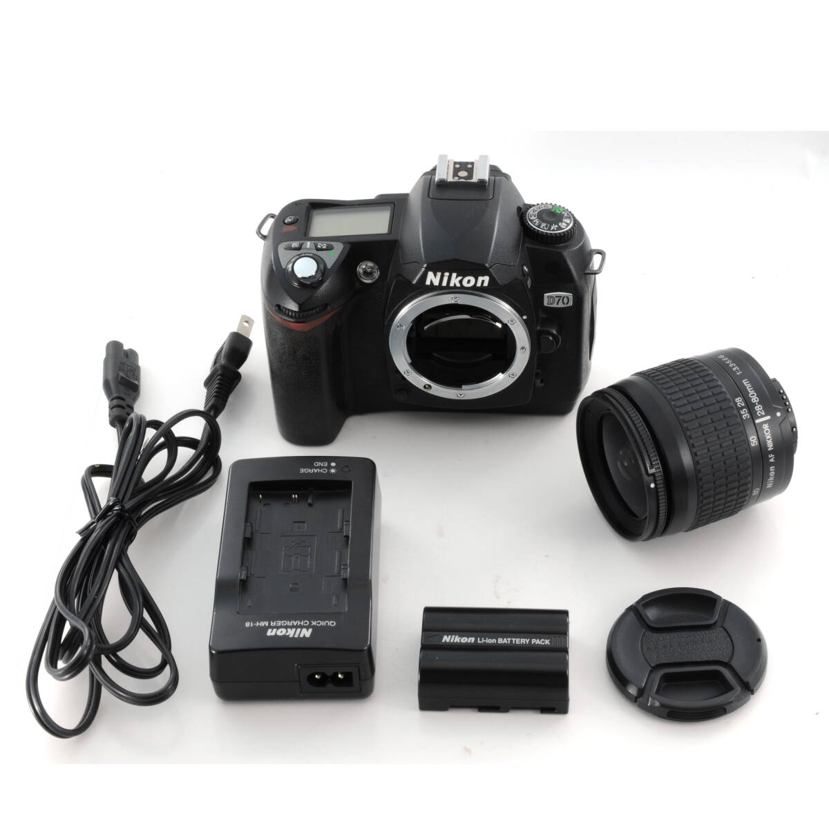 Nikon D70は、600万画素CCDセンサーを搭載した初級~中級向けのデジタル一眼レフカメラです。優れた画質と操作性で長年にわたり人気を集めています。セットのAF Nikkor 28-80mmは、日常撮影に適した軽量な標準ズームレンズです。撮影入門にもおすすめの構成です。