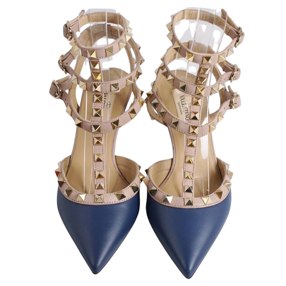 | 美品 ヴァレンティノ ガラヴァーニ VALENTINO GARAVANI パンプス ストラップ スタッズ レザー ヒール 35(22cm) ネイビー |