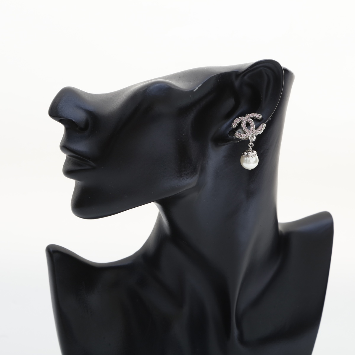 極美品 CHANEL A13C 2013年 ココマーク ラインストーン パール ドロップ イヤリング シルバー