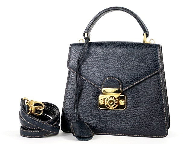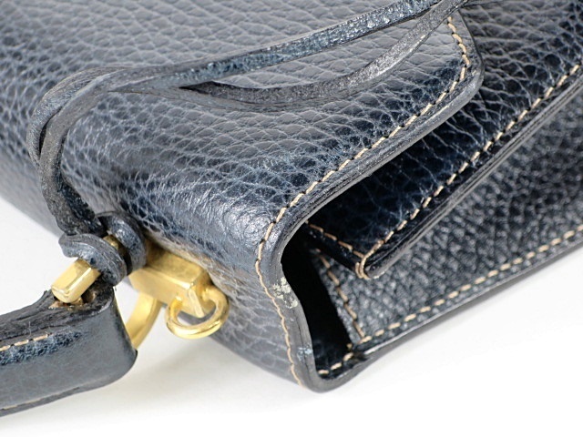 | 【a.testoni】ア・テストーニ 2WAYショルダー ハンドバッグ 本革 ネイビー系×ゴールド金具 イタリア製【EE96】 |