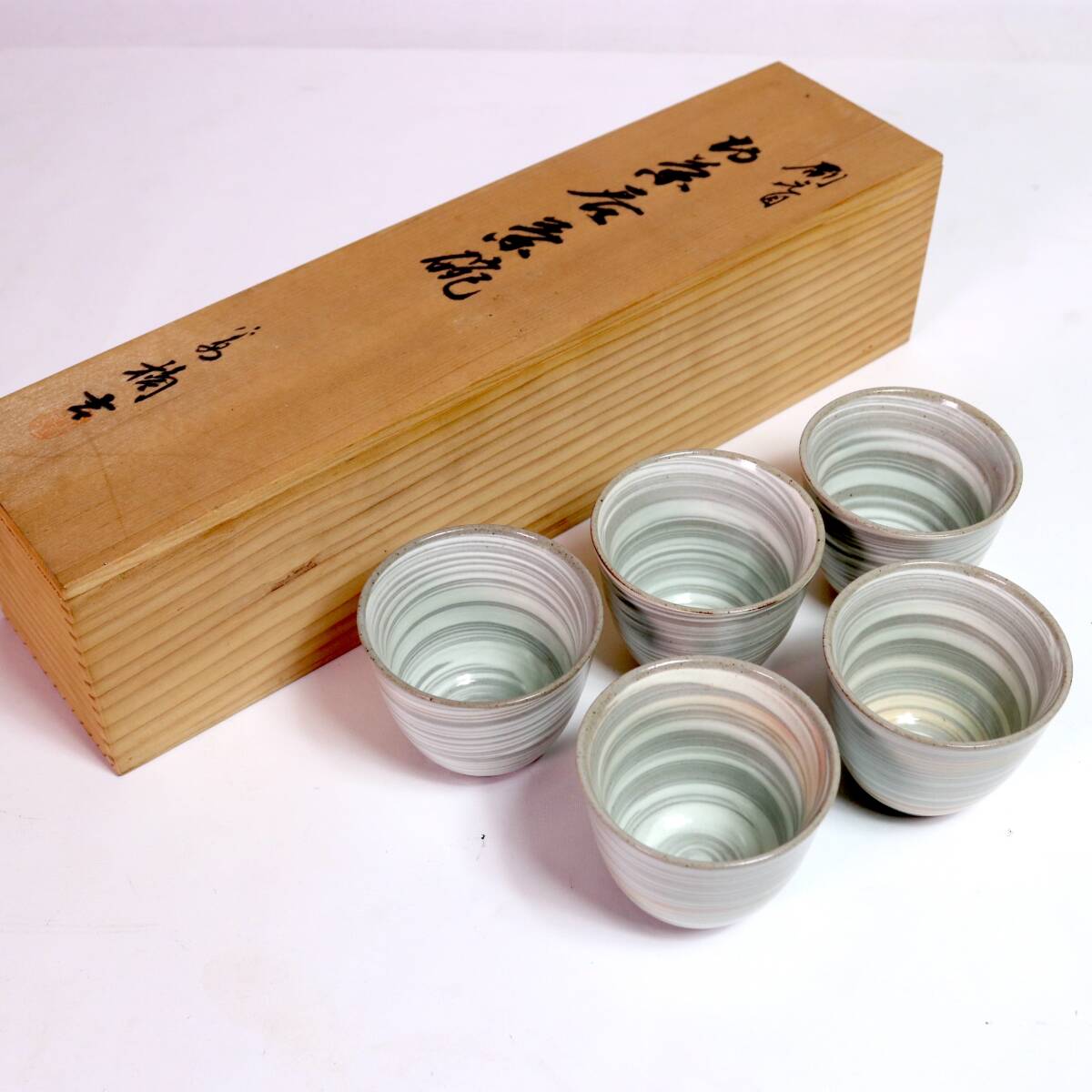 C1107 楠吉 お茶 呑茶碗 湯呑み 5客 共箱 焼き物 茶器 TACHIKICHI