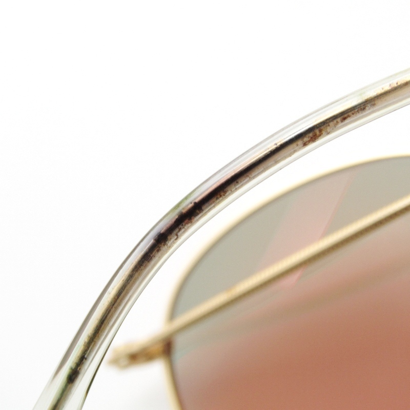 | 状態 | C 中古:目立つ傷や汚れなどがあり使用感の多い商品です。 両テンプルに腐食によるメッキはがれや変色、両モダン合口にヒビと内部に汚れ有 |