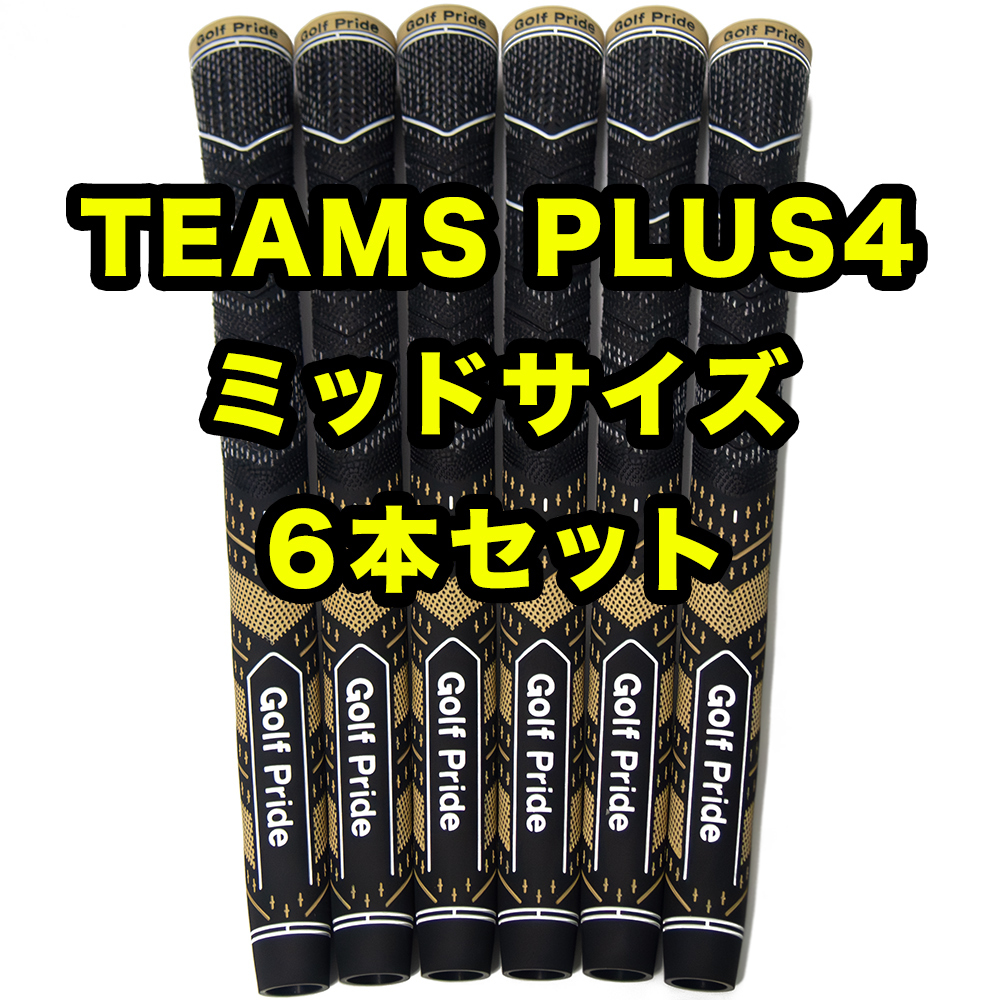 ゴルフプライド MCC TEAMS PLUS4 プラス4 Golf Pride M4TM ミッドサイズ ゴルフグリップ ブラック ゴールド 6本