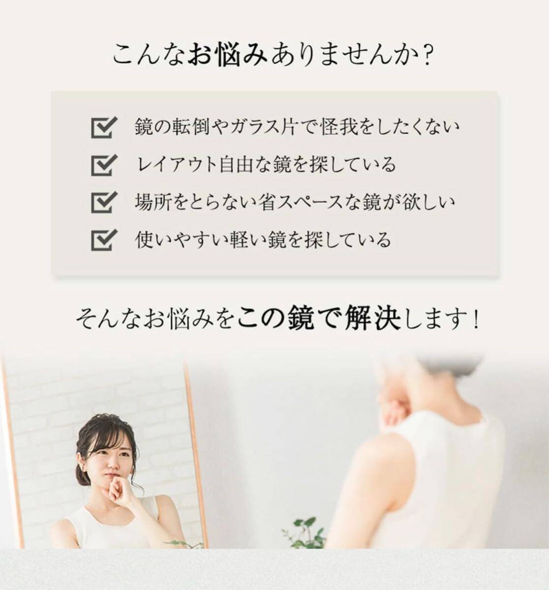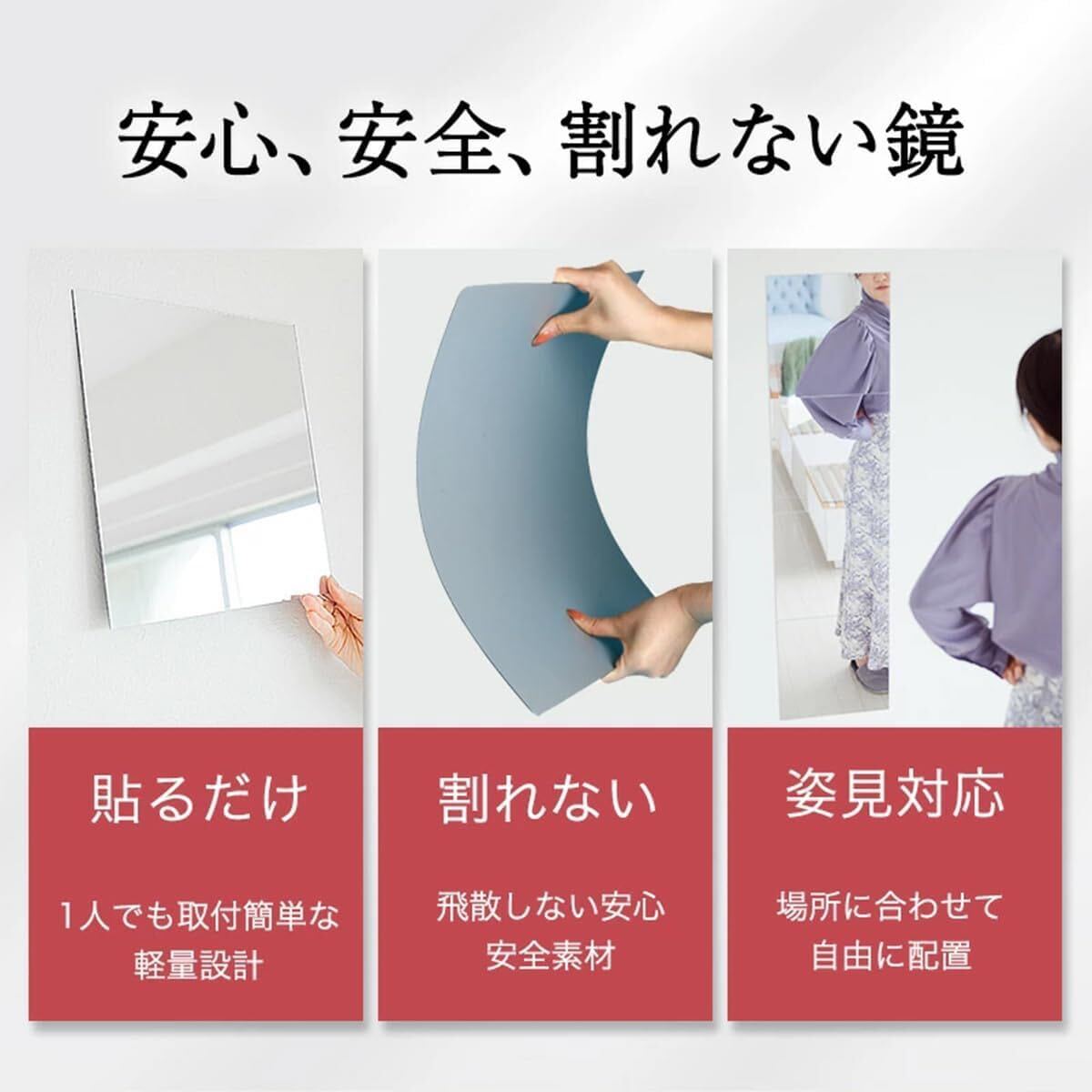 【軽量で割れない鏡】アクリル製で割れない。飛散防止ミラーです。2mm厚でしっかりしているのに一枚当たり約170gと非常に軽量です。