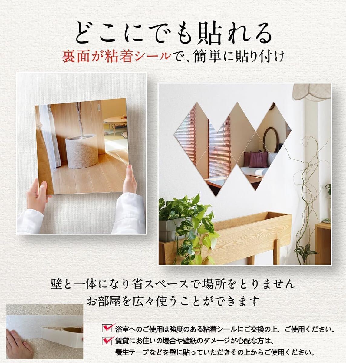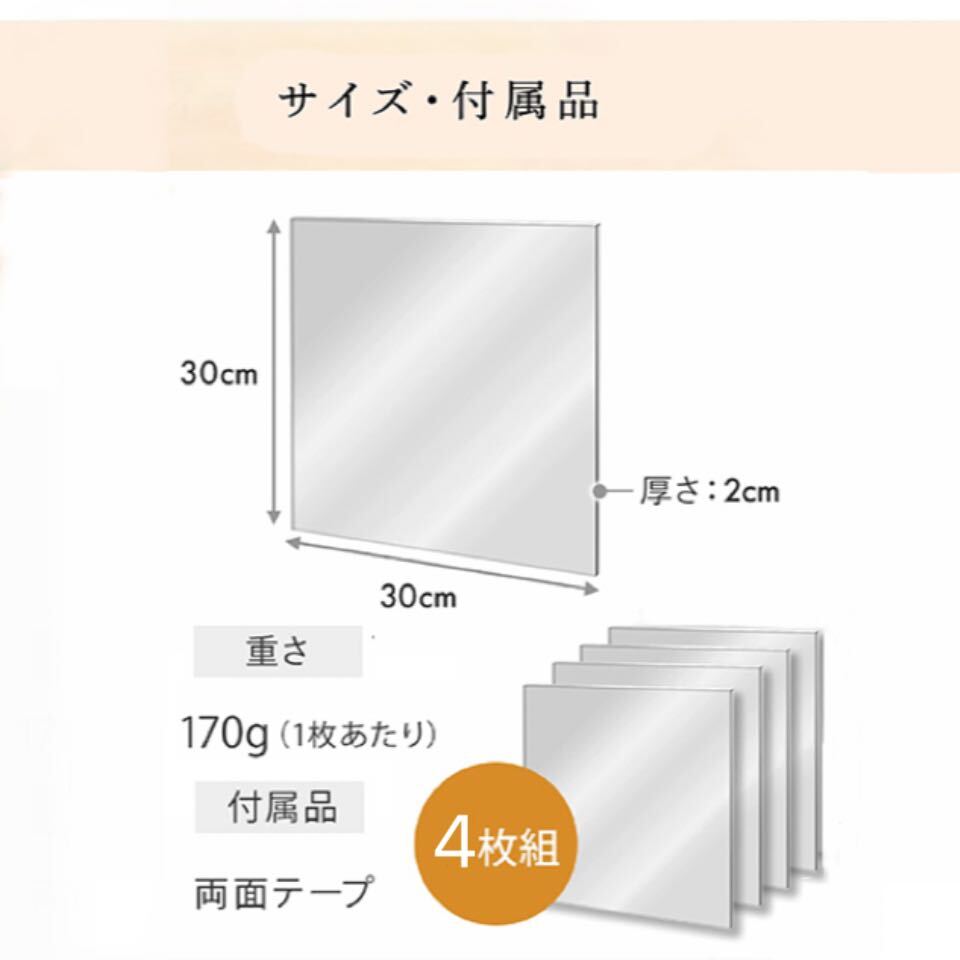 【使い方無限大】30cm×30cm4枚セット。縦に並べれば全身鏡に。ひし形でインテリアとして。一枚で髪型チェックなど配置次第で様々な使い方ができます。