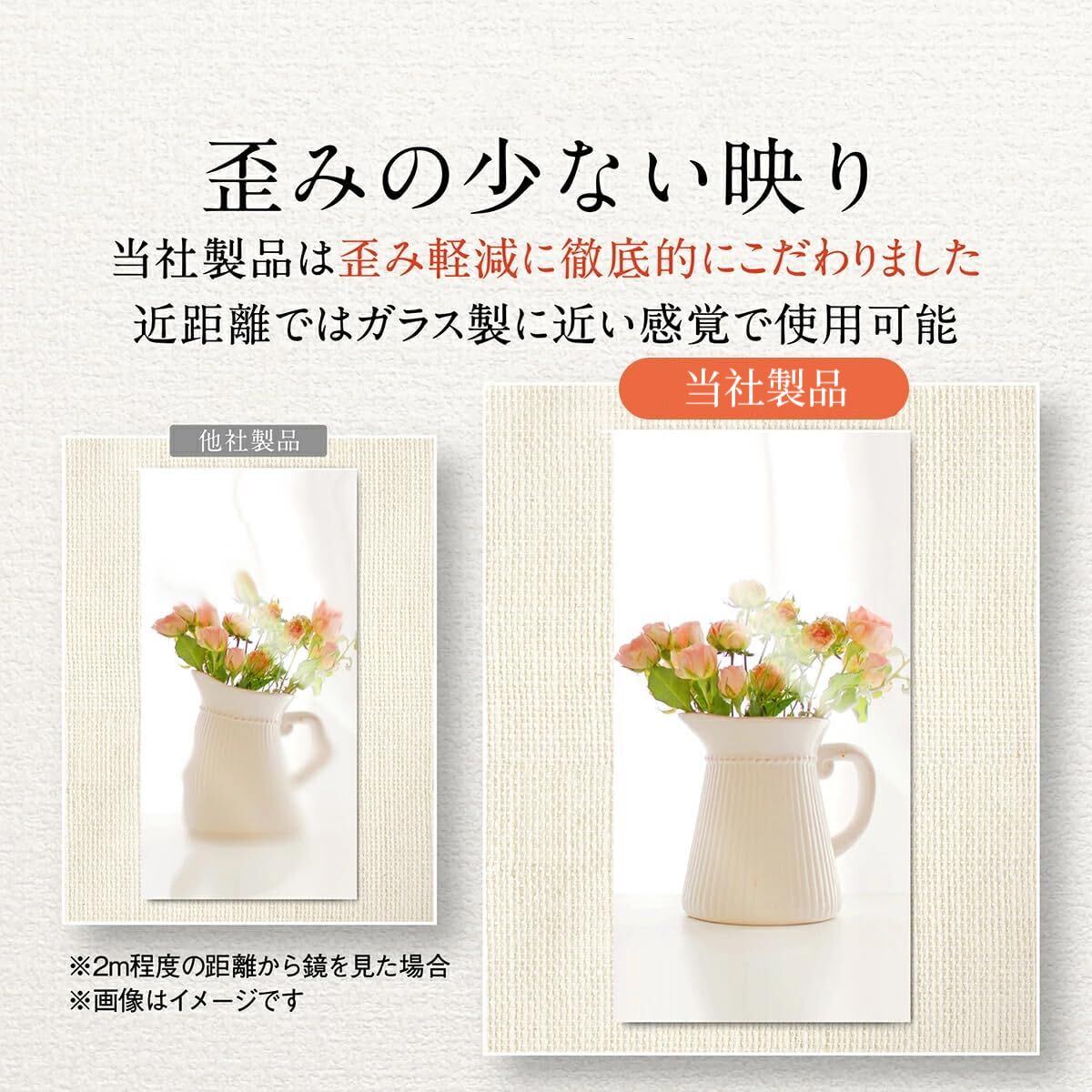【歪み超軽減】これまでのアクリル製鏡は通常のガラス製鏡に比べると極端に歪みがひどい物が多かったです。当製品は歪み軽減に徹底的にこだわり、近距離ではガラス製に近い感覚で使用可能です。