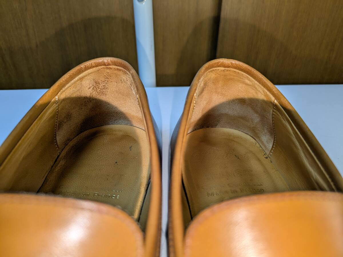 パラブーツのローファーになります。ビームスf別注カラーだったと思います。古い物なので使用感はありますが目立ったダメージのない綺麗な状態です。是非ご検討下さい。