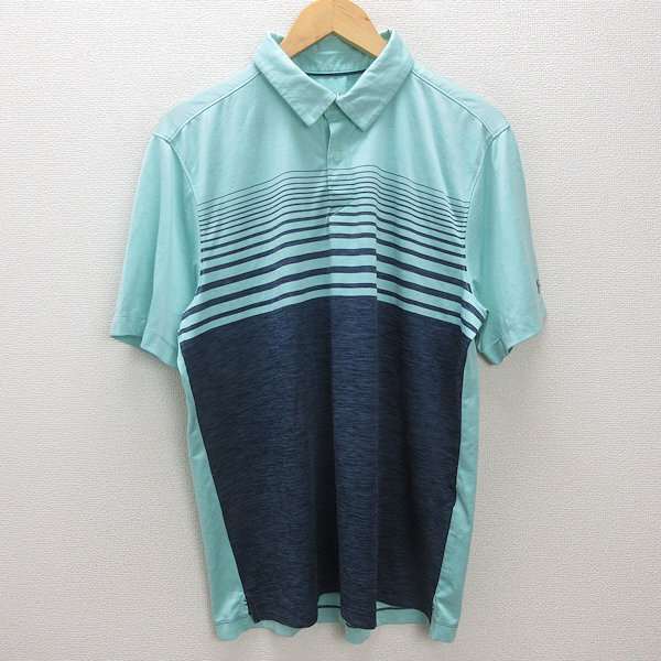 G■アンダーアーマー/UNDER ARMOUR 半袖ドライポロシャツ/スポーツウェア【XL】青系/men's/53【中古】■