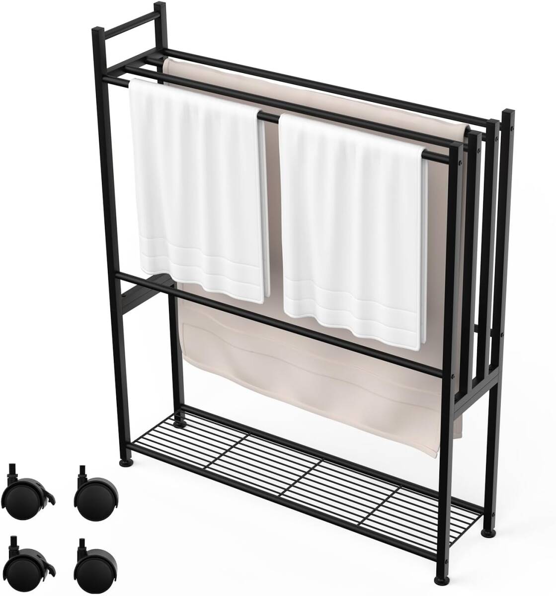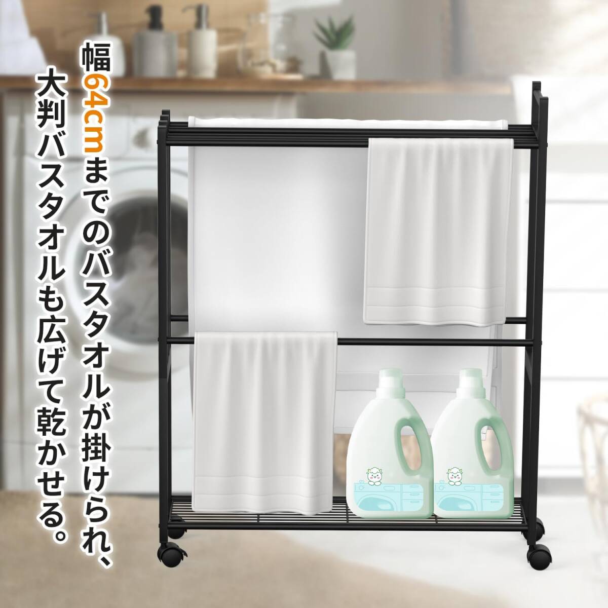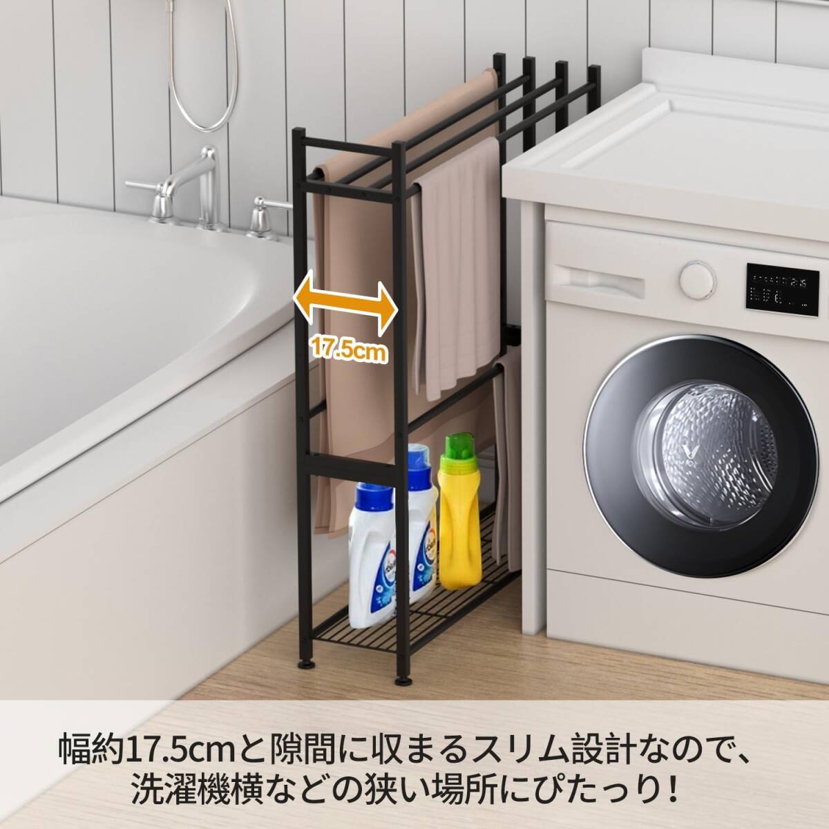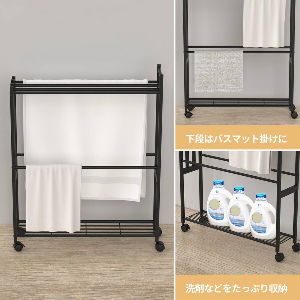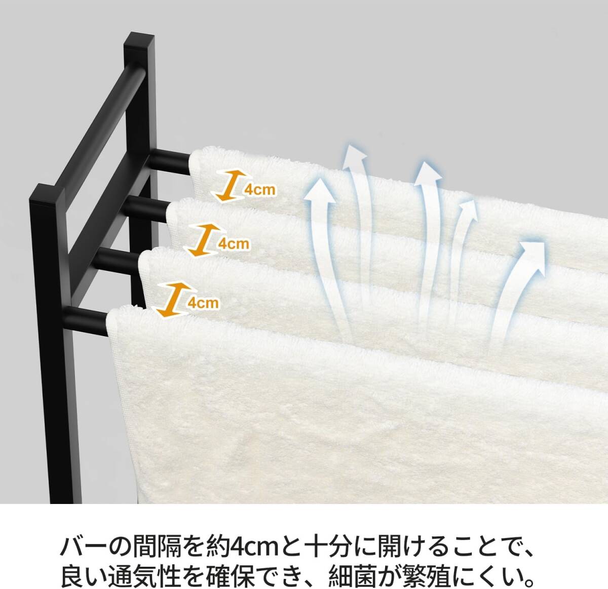 ブラック色 UTIMIU バスタオルスタンド バスタオルハンガー スリム 横から掛けられる 物干し ハンガー タオル ラック 大判サイズ