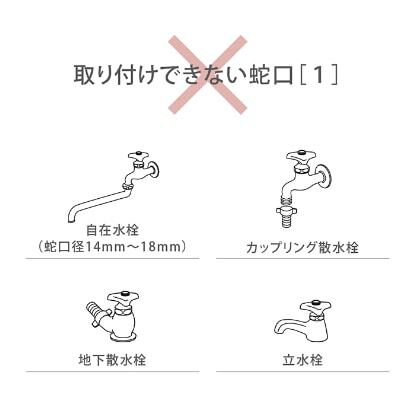 取付けられる蛇口は横水栓(蛇口径14-18mm)、万能ホーム水栓。