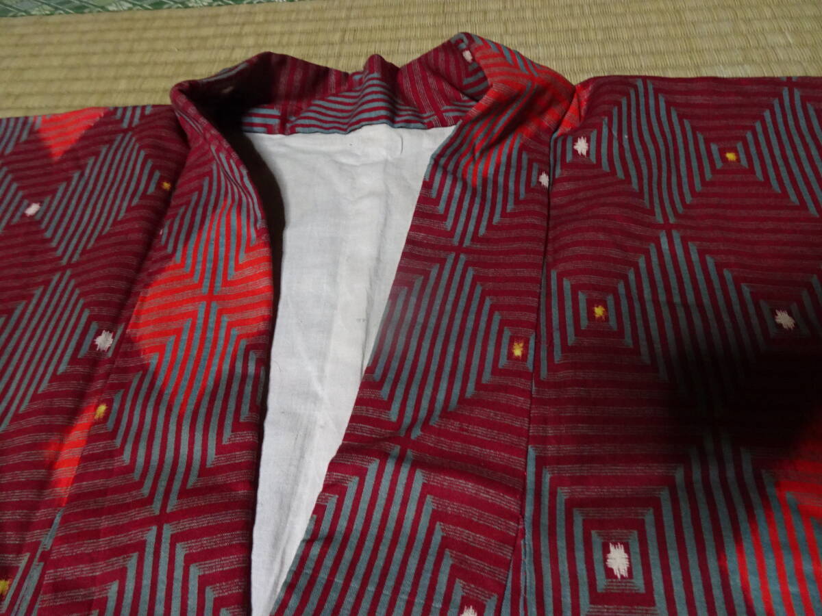 左前身頃の裾に約2cmの小穴が一カ所(写真5参照)見られますので素材用に出品します。バチ襟で、裏地は白い木綿とエンジ色の木綿です。袖裏も赤い木綿です。参考までに裄丈は約62cm、身丈は約150cm、袖丈は約48cmです。出品しております商品は中古品やアンティーク品です。充分点検しておりますが、僅かな見落としがある場合はご容赦下さい。また、色合いも忠実に再現できない場合もありますのでご理解下さい。完品をお求めの方や匂いが気になる方、神経質な方のご入札はお控え下さいませ。また、いかなる理由があっても入札後の取り消しには応じられませんので慎重なご入札をお願い致します。24時間以内にご連絡頂ける方、3日以内に入金頂ける方のご入札をお待ちしております。お取り置きは10日位までお受け致します。