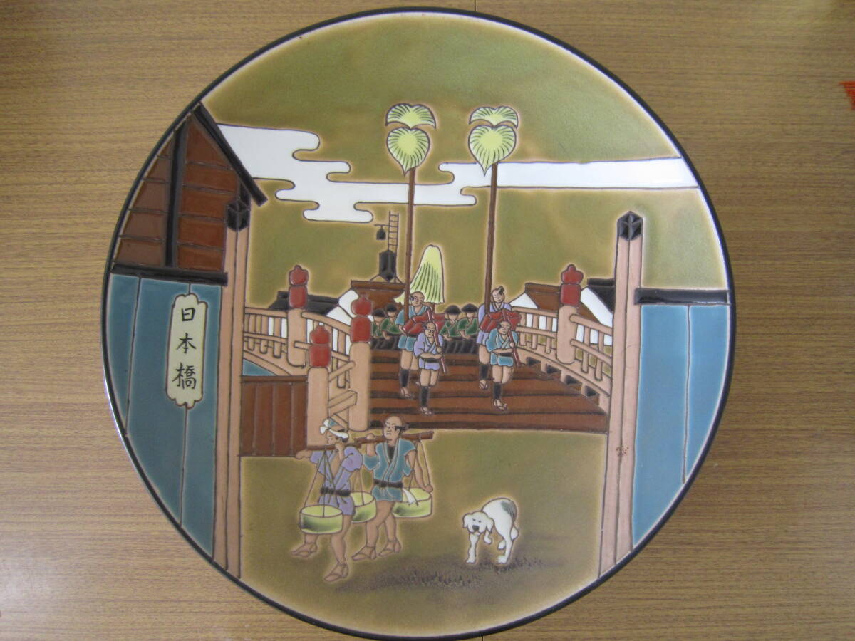 (中古品/箱なし) 東海道五十三次 有田焼 忠峰 絵皿 飾り皿 日本橋 陶器 骨董品