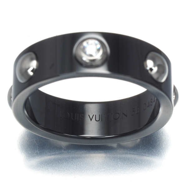 ブラックセラミックの艶やかな光沢と共にラウンドモチーフ輝くプラチナの上品なアクセントを演出したルイヴィトンのクルーリング。1石の厳選ダイヤと共にお手元を上品に照らしてくれるジュエリーですね。 |
