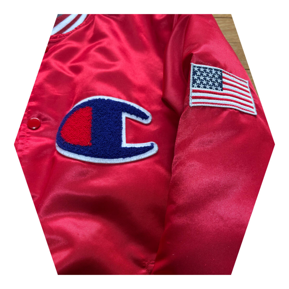 Champion チャンピオン ビッグロゴ サテンスタジャン スタジアムジャンパー サイズM 希少カラーレッド 赤 ヴィンテージ ビンテージ