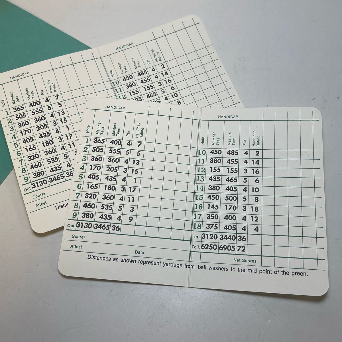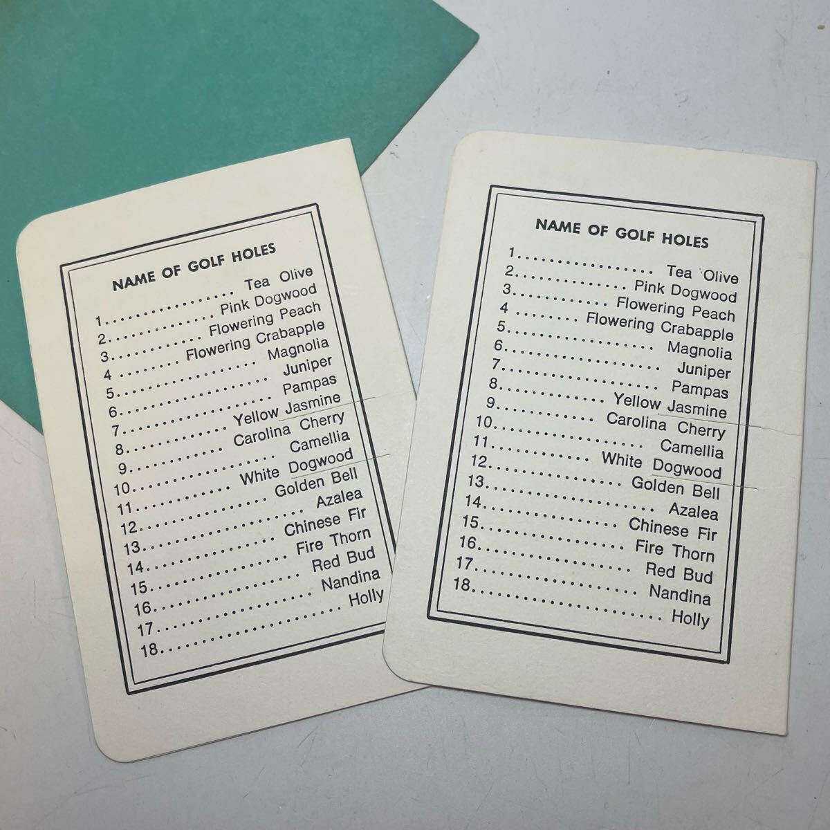 マスターズ開催でお馴染みのオーガスタ・ナショナル・ゴルフクラブ スコアカード×2枚です。
