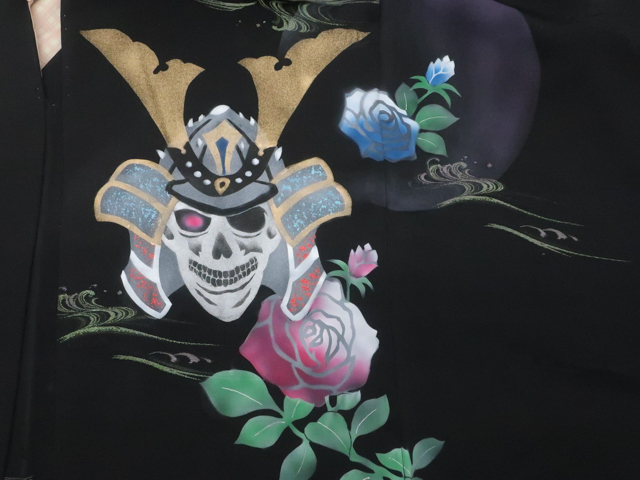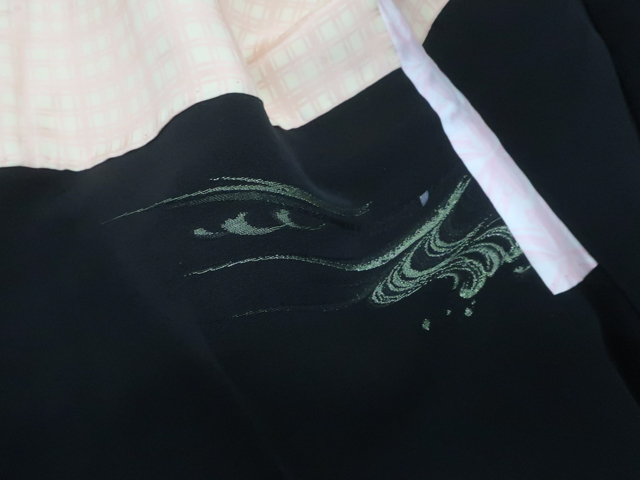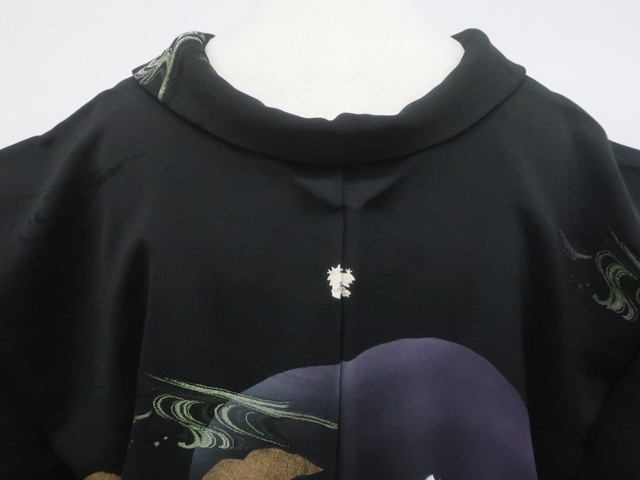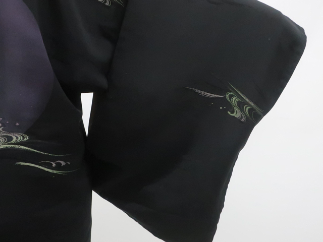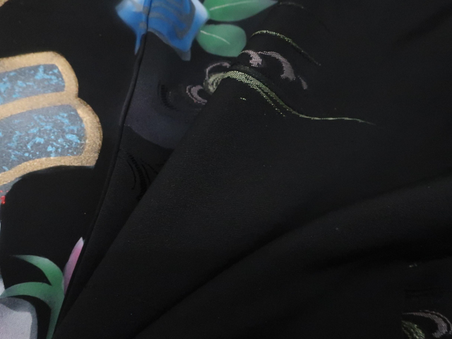 | リサイクル商品のため、所々金彩飛びがございます。 右袖汚れがございますが着用可能なお品です。 地色は黒です。 1枚目の画像が近いお色かと思われます。 素材は正絹です。 |