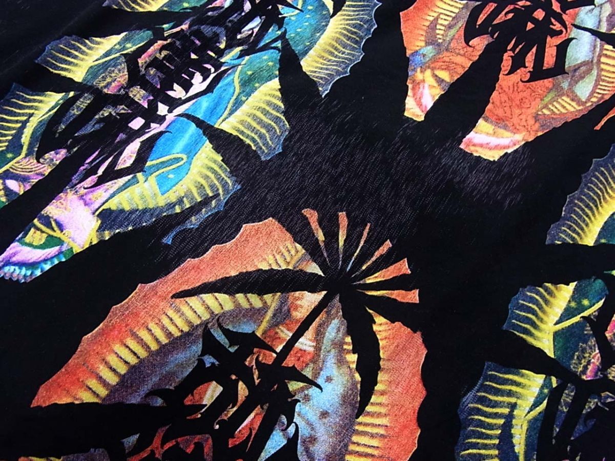 定番の肌触りの良いレーヨン素材に大胆なグラフィックデザイン。
