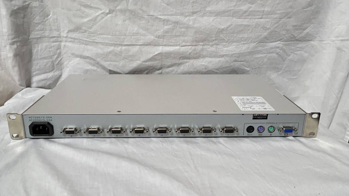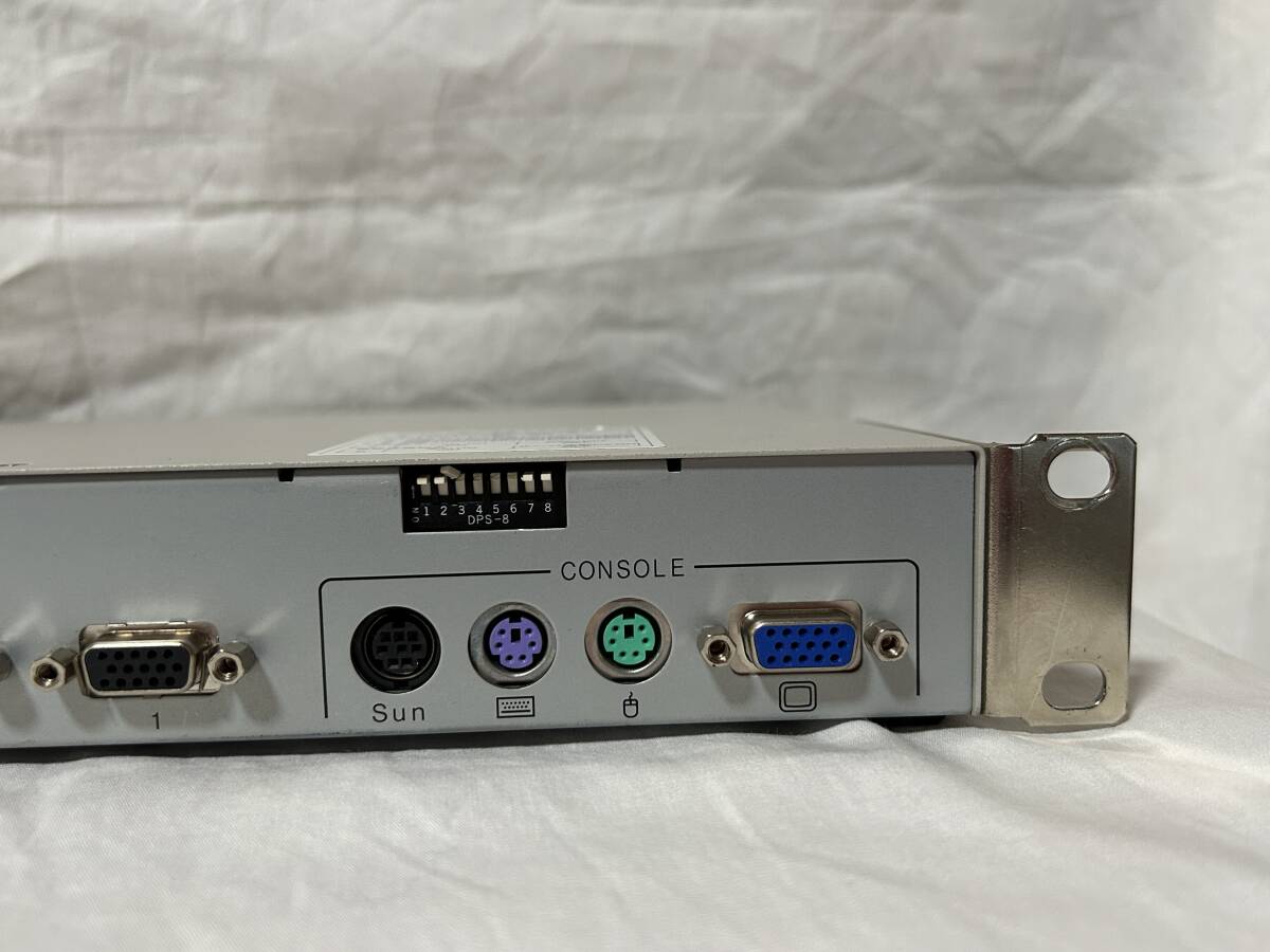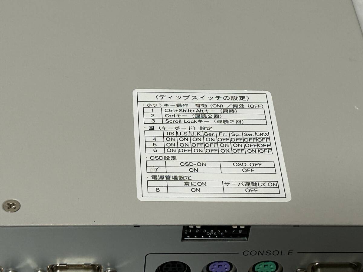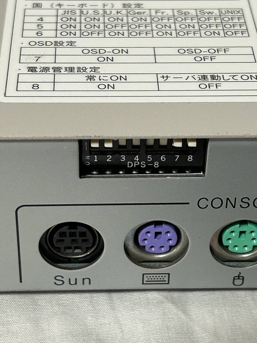 以前使用されていたものを譲り受けた商品です。 スイッチがいくつか破損しており、前カバーが外されていて通電確認ができませんのでジャンク扱いでお願いします。 名称/型名: PShare M8 対応機種: PC DOS/V互換機 /Sun/Mac コンソールポート: キーボード PS/2、Mini DIN 6ピン メス ×1 紫色 マウス PS/2、Mini DIN 6ピン メス ×1 緑色 Sun SUN純正、Mini DIN 8ピン メス ×1 黒色 モニタ Mini D-SUB 15ピン メス ×1 青色 電源: AC100V 50/60Hz 消費電流: 0.06A AC キーボード/マウス供給可能電流: 最大300mA 動作周囲温度/湿度/保存温度: 0〜40℃/10〜80%RH/-20〜60℃ 構造: 金属ケース、塗装(アイボリー色) 外形寸法 W×D×Hmm : 437×210×42 重量 Kg : 2.7 使用していたものである事をご理解いただき、詳しいことは分かりませんのでわかる方のみご入札をお願いします。 | |||