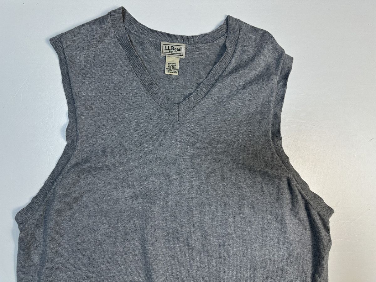 ●US 超ビッグサイズ US古着 L.L.Bean エルエルビーン 90s 90年代 ベスト ロング Vネック コットンカシミア グレー【2XL/XXL】