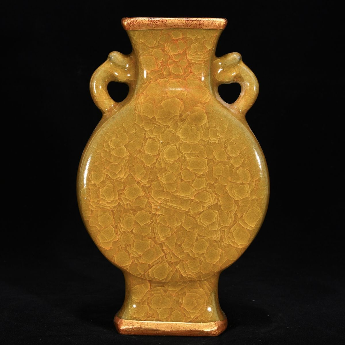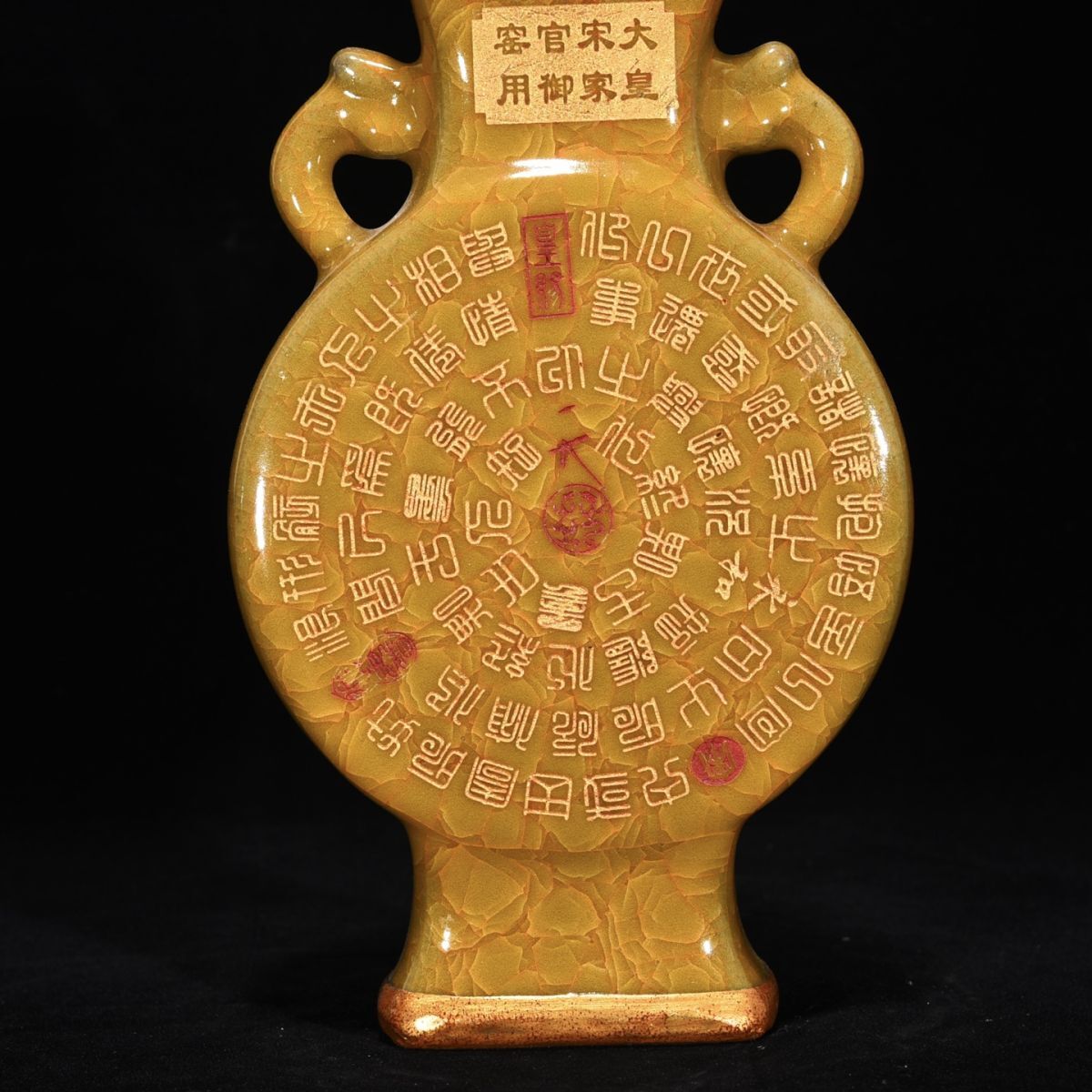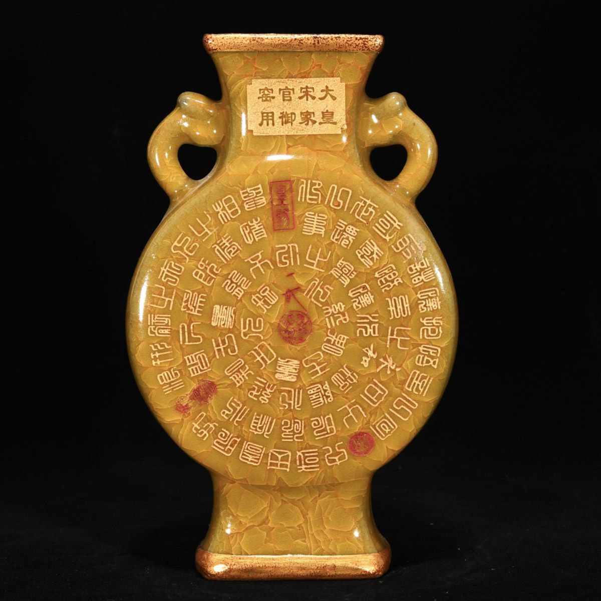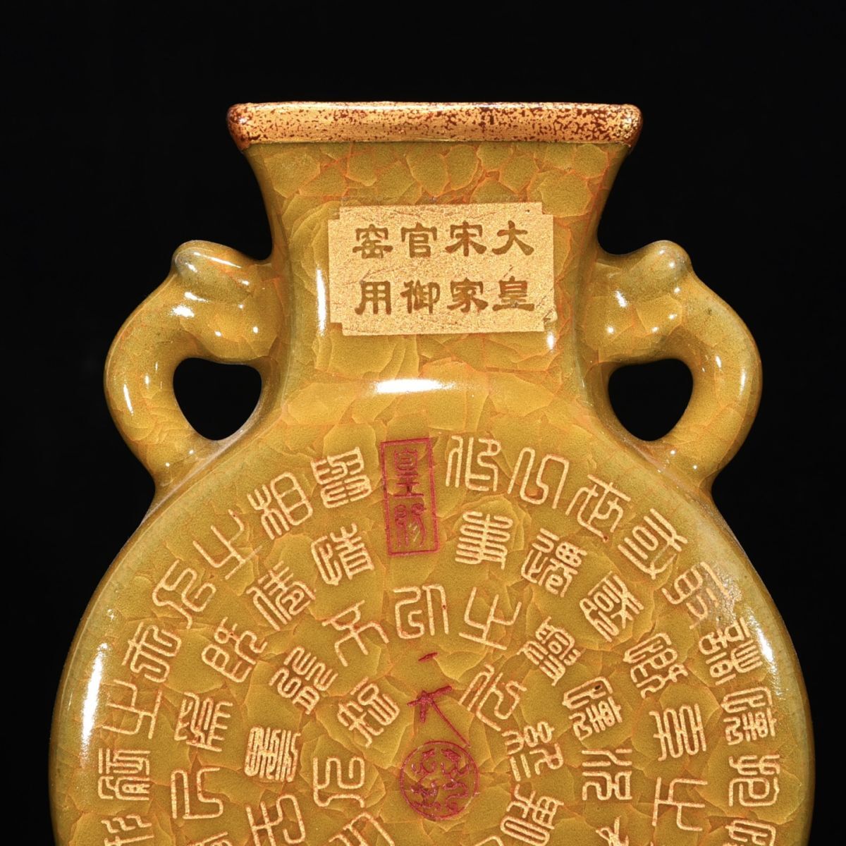 【永】宋時代 大宋官窯皇家御用 冰裂紋 金包口銘文扁瓶 古陶磁器 陶芸 皿 中国陶瓷器 唐瓷 置物擺件 古美術 古賞物 収集 旧家蔵出 中国唐物