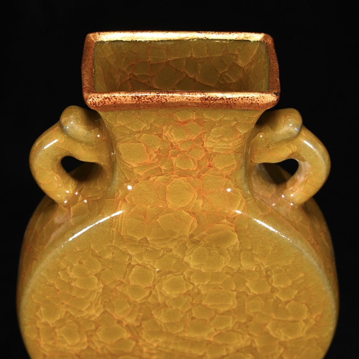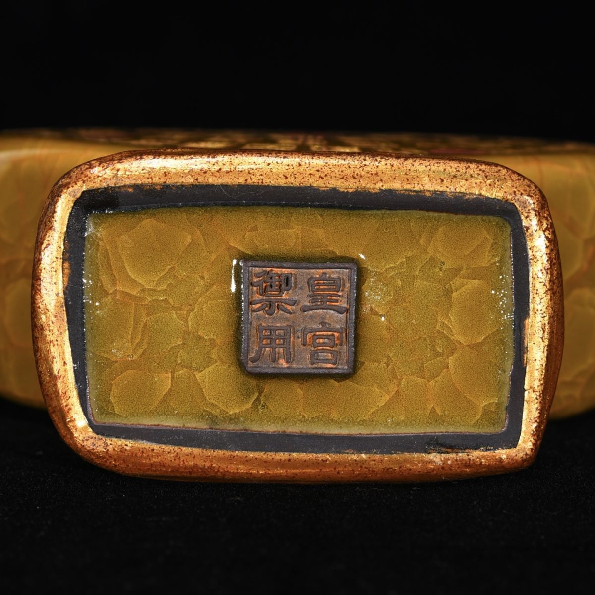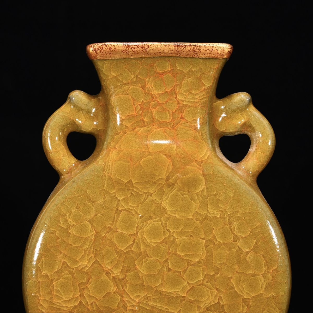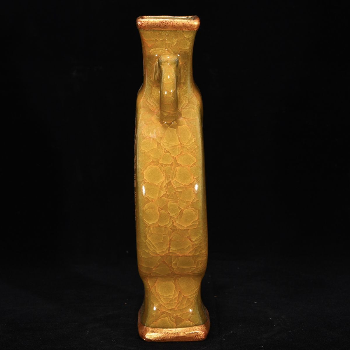 【永】宋時代 大宋官窯皇家御用 冰裂紋 金包口銘文扁瓶 古陶磁器 陶芸 皿 中国陶瓷器 唐瓷 置物擺件 古美術 古賞物 収集 旧家蔵出 中国唐物