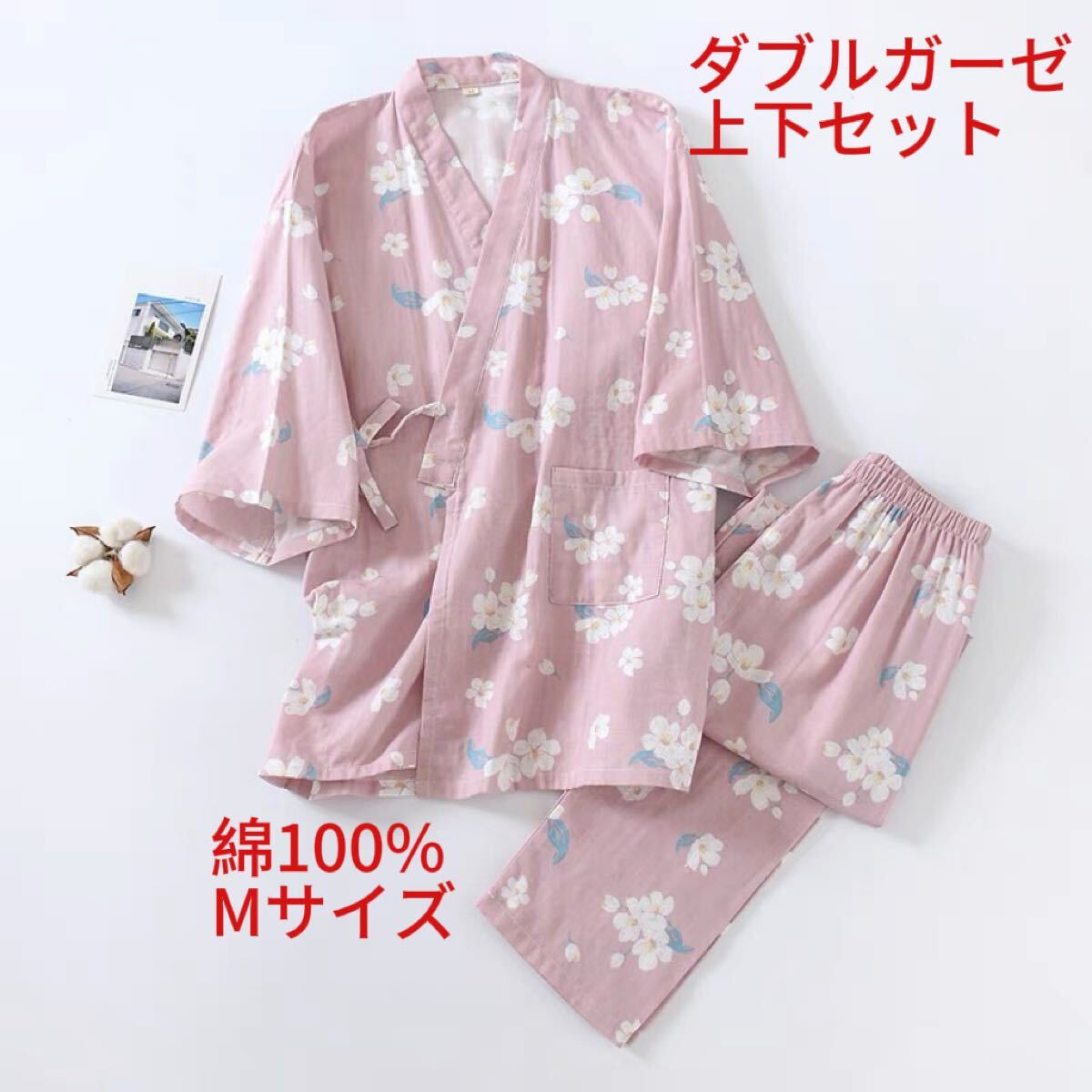 甚平 Mパジャマ レディース 上下セット 袖7分丈 女性 綿100% ダブルガーゼ ゆったり ルームウェア 部屋着 通気