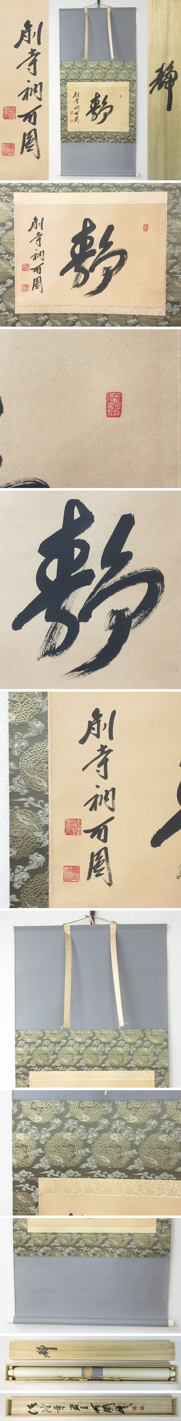 こちらは 掛軸 聖徳宗 総本山 法隆寺 管長 大野可圓 横物 墨蹟 一字書 『静』 共箱 です。