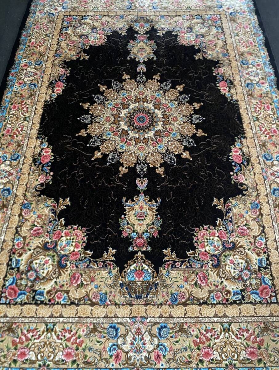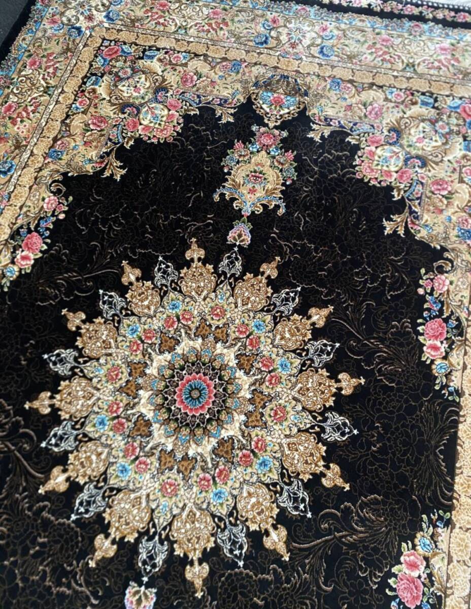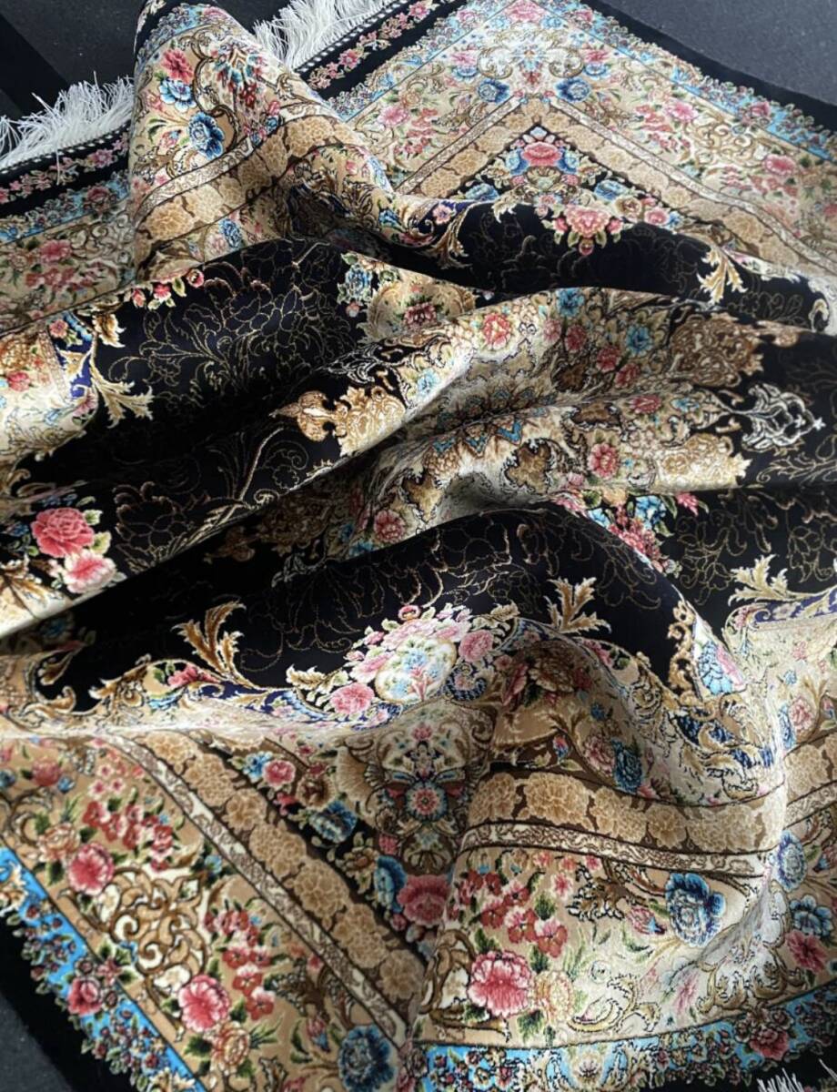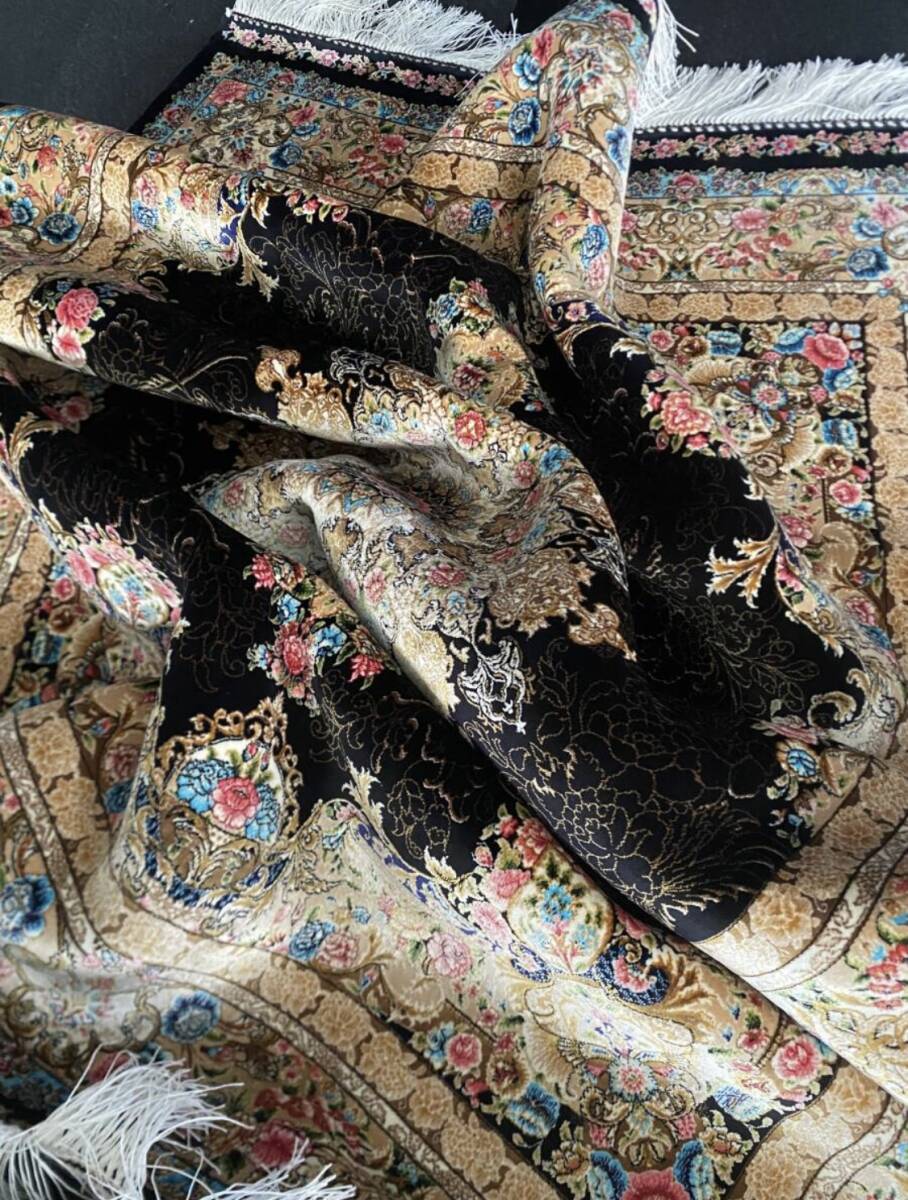 クム絨毯の歴史は1930年頃からと浅く、最初はウール絨毯を、後にシルク絨毯を織るようになりました。絹の産地としても有名なクムで、現在作られるほとんどの絨毯は100%シルク製です。