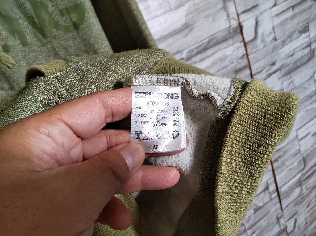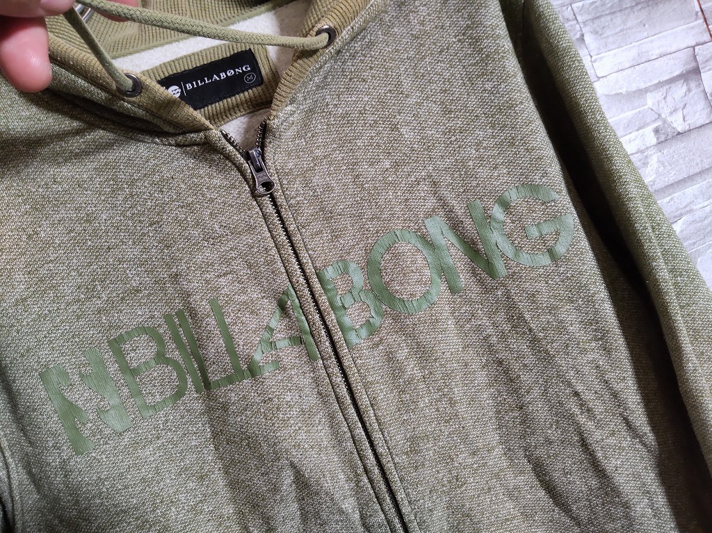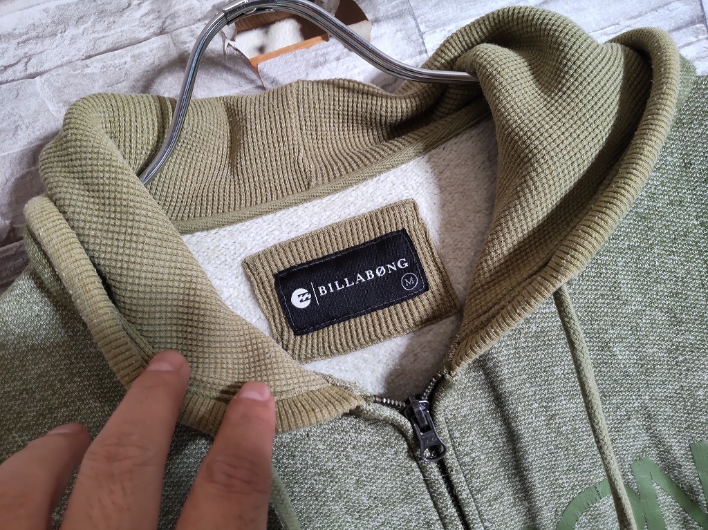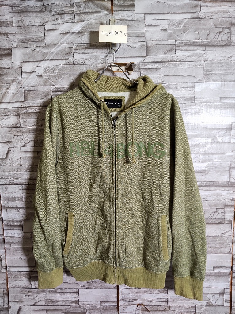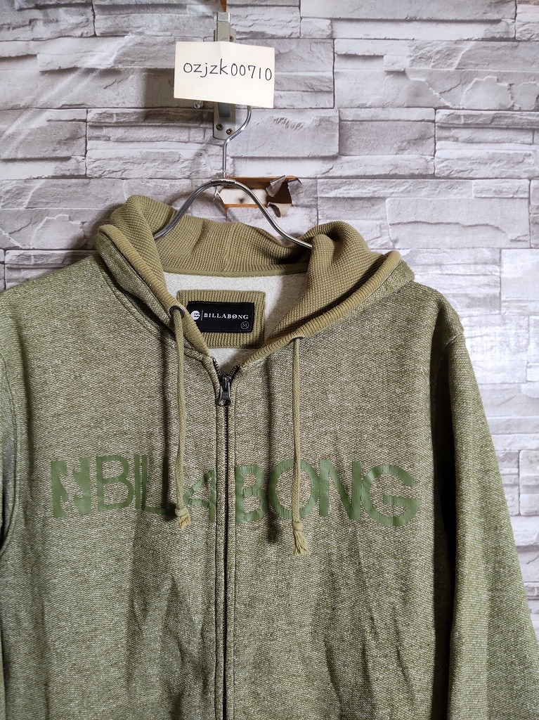 men's J490 BILLABONG ビラボン ロゴ プリント フルジップ スウェット パーカー M カーキ系