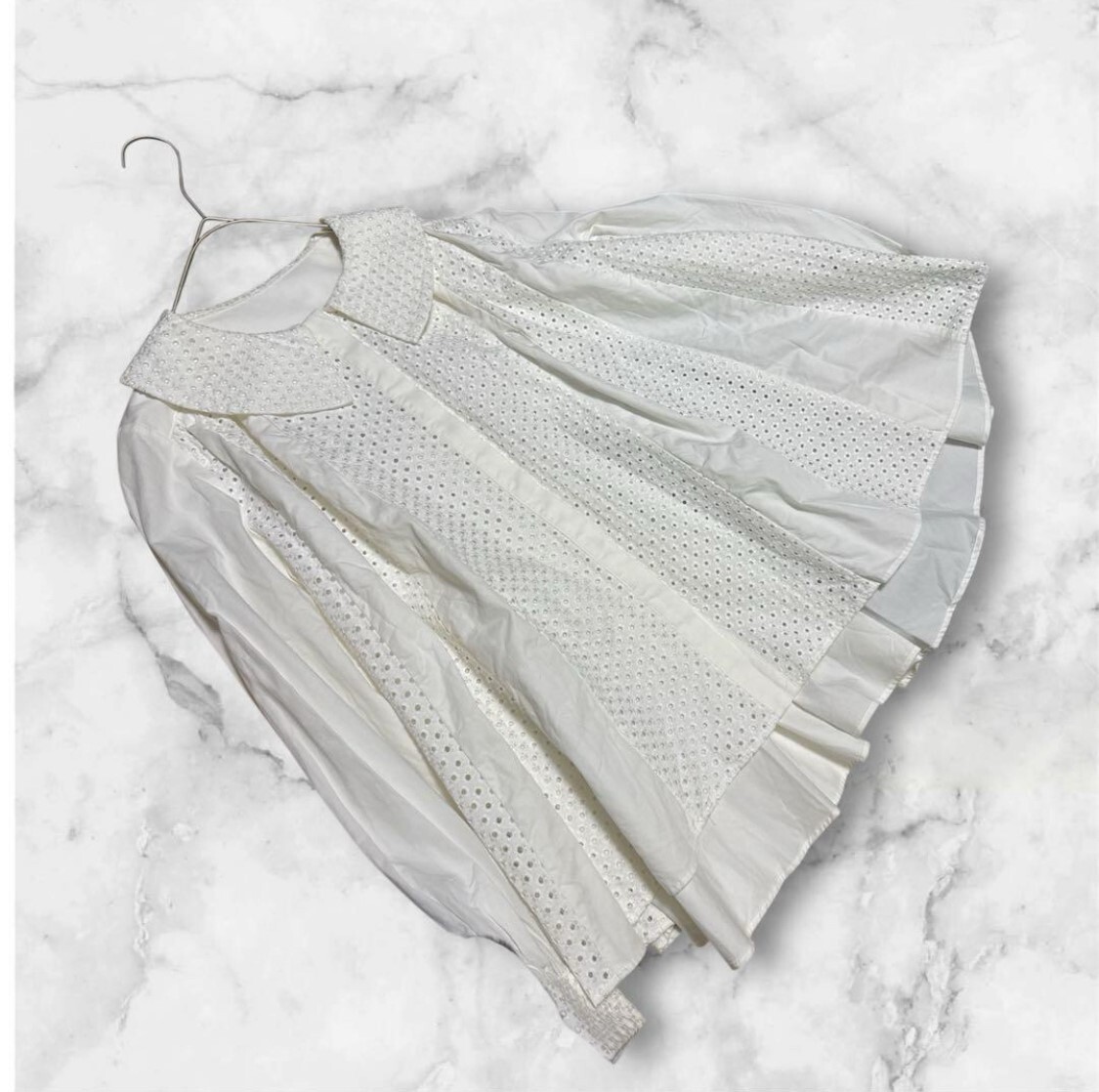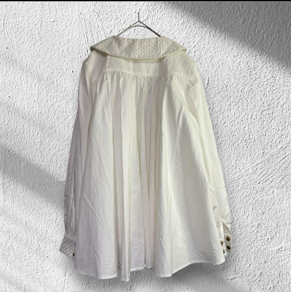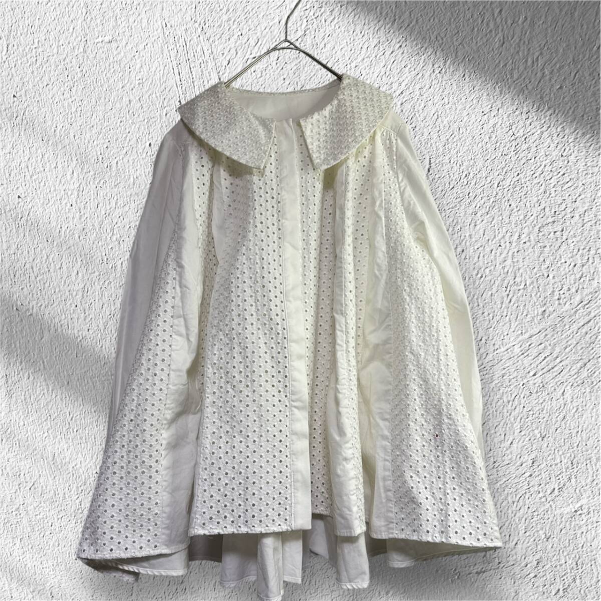 商品説明 rosymonsterロージーモンスター 【状態】新品未使用 【カラー】ホワイト 【素材】 表地:コットン100% 別地:ポリエステル65%、コットン35% 刺繍糸:コットン100% 【サイズ】フリー 前着丈約66cm、 後着丈約71cm、 肩幅約38cm、 バスト約127cm、 袖丈約62cm、 袖口周り約20cm、 裾周り約300cm 素人寸法ですので多少の誤差はあります。 ご覧いただきありがとうございます。 購入時期、着用回数、品番に関しましてはお答えしておりません お品物の状態を参考にしていただけますようお願い致します。