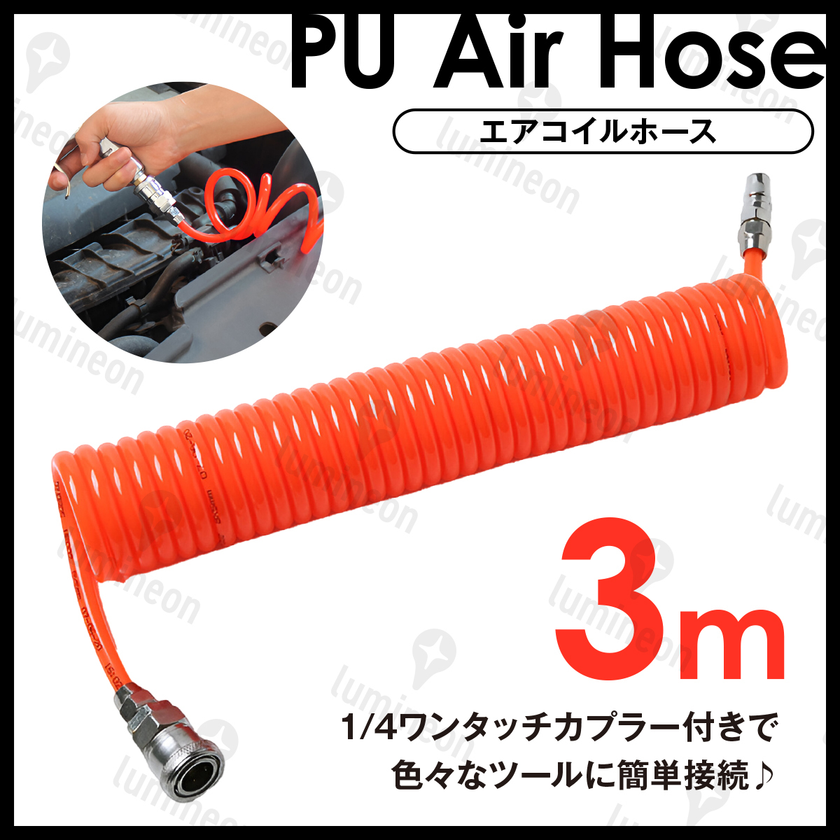 エア コイル ホース エアー ダスター チューブ 3m ツール 延長 カプラ カプラー コンプレッサー 工具 DIY 塗装 空気 入れ コネクタ g230a 3